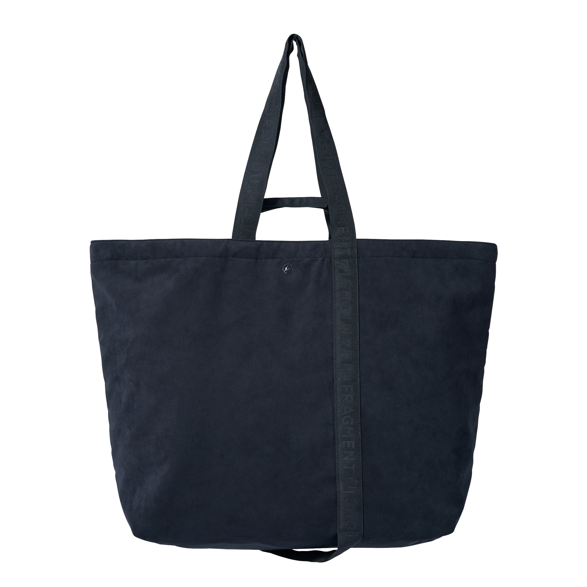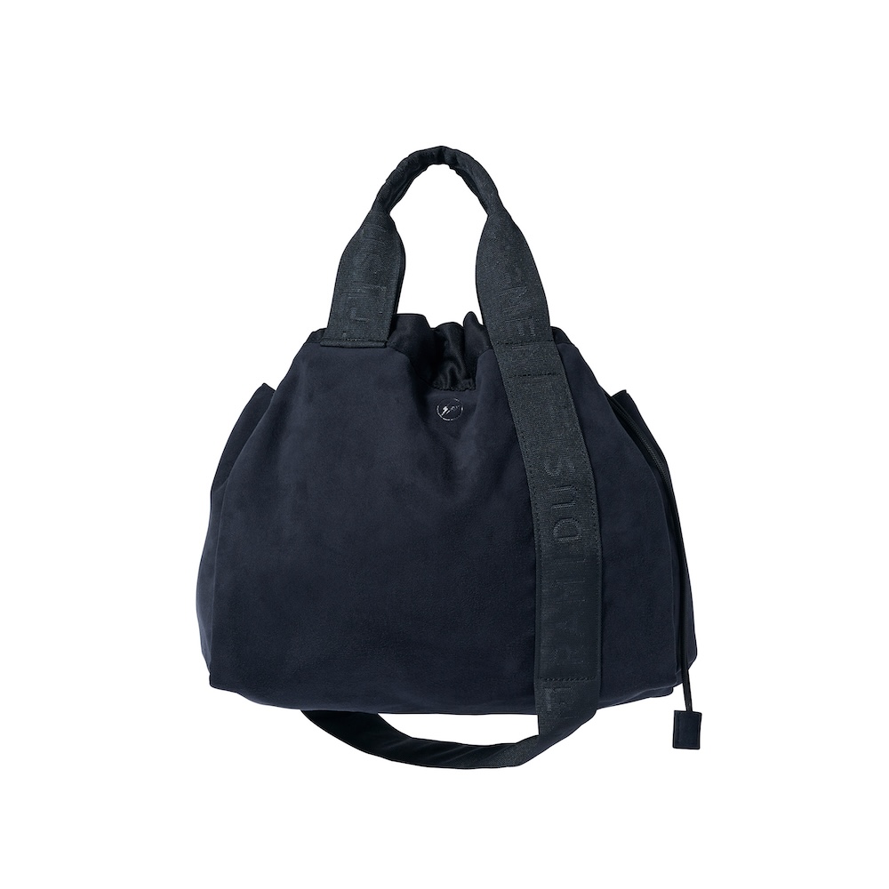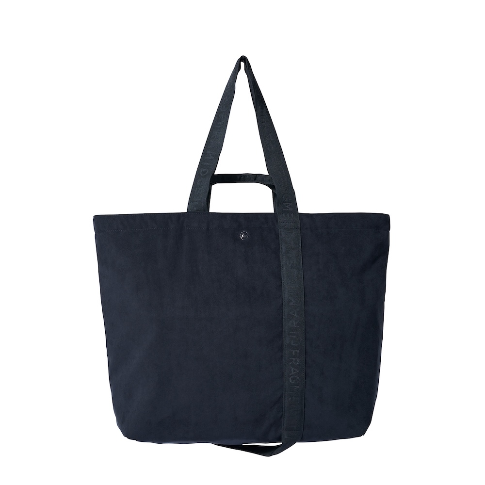手持ち、肩掛けで使える2サイズ展開のトートバッグ。両ブランドのエンボスロゴがさりげなくあしらわれ、ハンドルテープはブラックワントーンでまとめたシンプルな仕上がりです。
