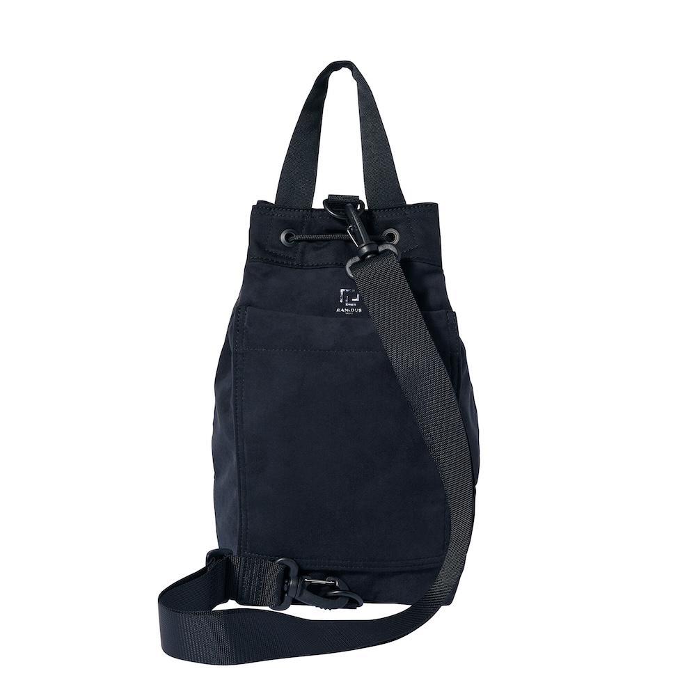 こちらも巾着バッグショルダーポーチとして活躍する2WAY仕様のボンサック。背面にスマートフォンを収納できるポケット付きです。