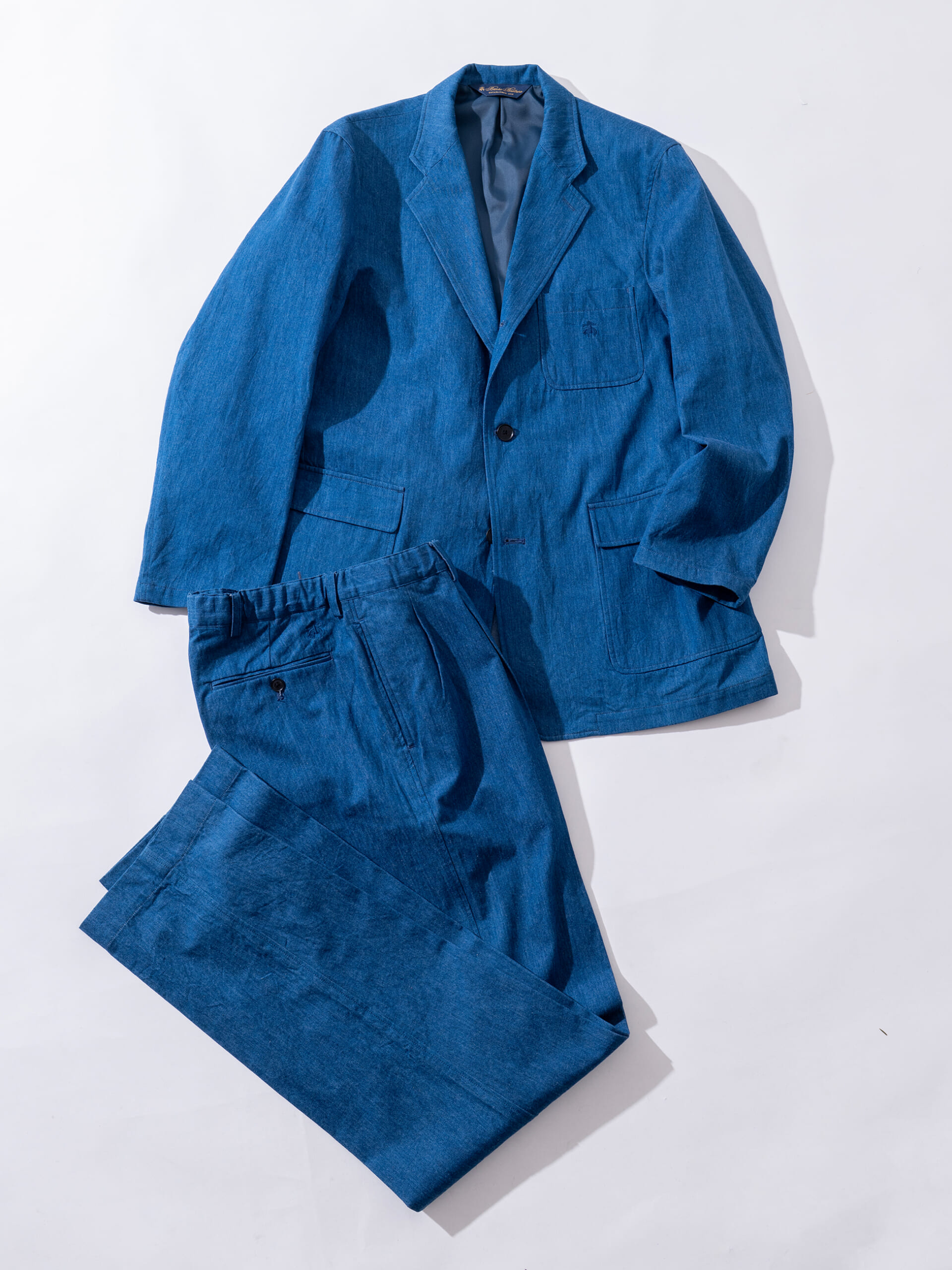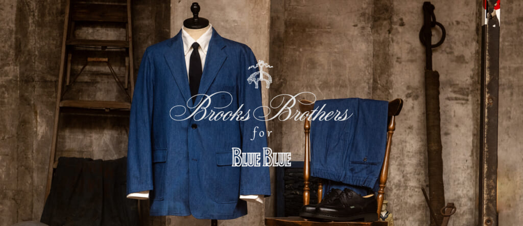 デニムとインディゴにこだわる「BLUE BLUE(ブルーブルー)」は米国のブランド「Brooks Brothers(ブルックスブラザーズ)」と2023年からコラボレートしており、これまでポロシャツやBDシャツなどをリリースしてきた。そして第 5弾となる今回、3月〜4月の“ハレの日”にふさわしい爽快なデニムセットアップがドロップ!