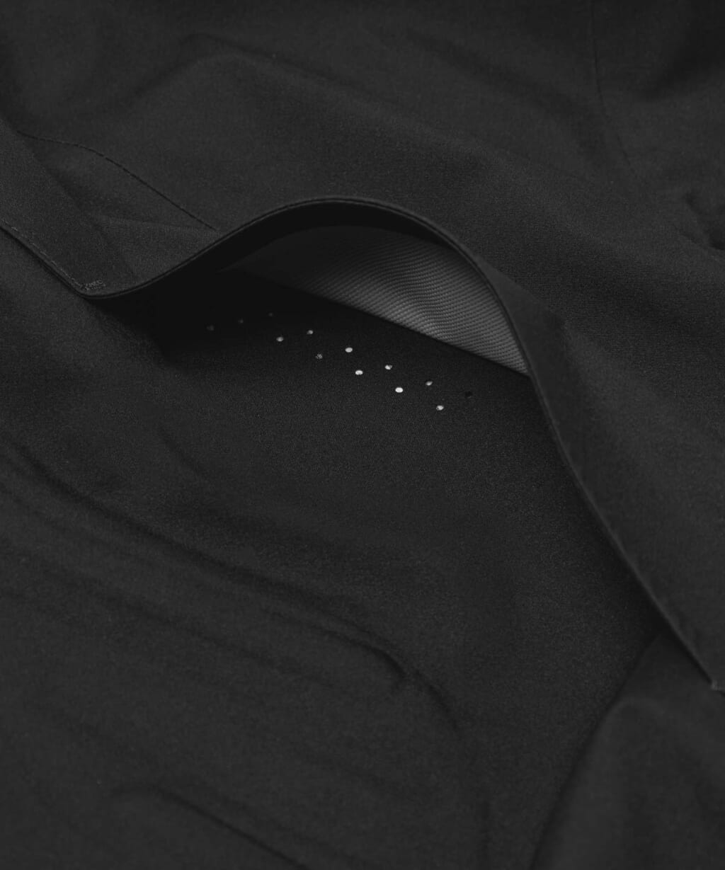 街で着るためにゼロから設計された本作は、防水透湿及び防風性を兼ね備えた Dermizax®を使用した3レイヤー構造のシェルジャケットだ。耐水性は20,000mm、透湿性は20,000g/平⽅メートル/24hrと十二分の機能を確保。