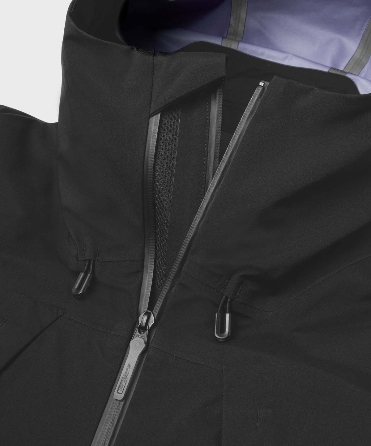 また、首回りにも起毛トリコットが配されているのでフルクローズドでも肌触りは良好! フードにはゴムスピンドル+ストッパーを、袖口にはワンハンドアジャスト機構を備えて調整もしやすく、また裾部には Cohaesiveコードロックシステムによって、従来モデルよりもスムーズにフィット感を調節することが可能だ。