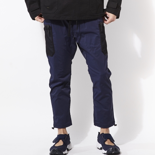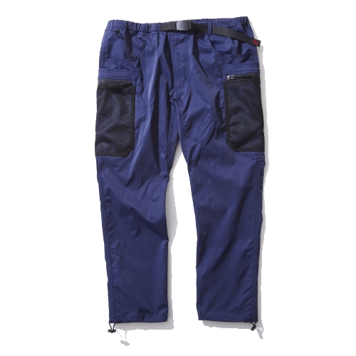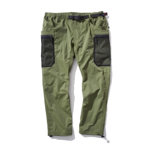 グリップスワニーとグラミチというアウトドアシーンを牽引するブランドとのトリプルコラボ。伸縮性に富んだボディを使い、左右にメッシュポケットを備えたパンツをデザイン。