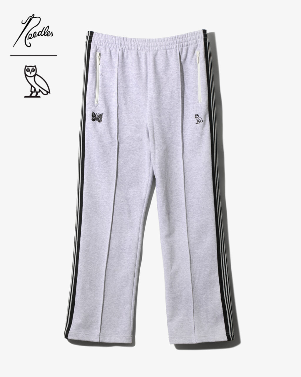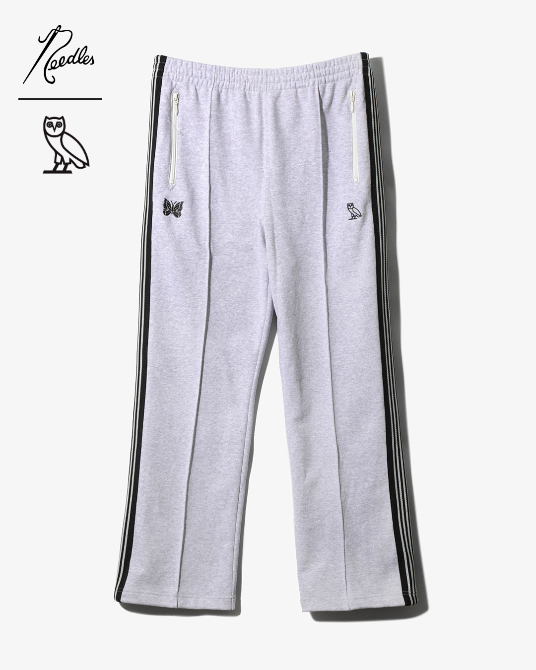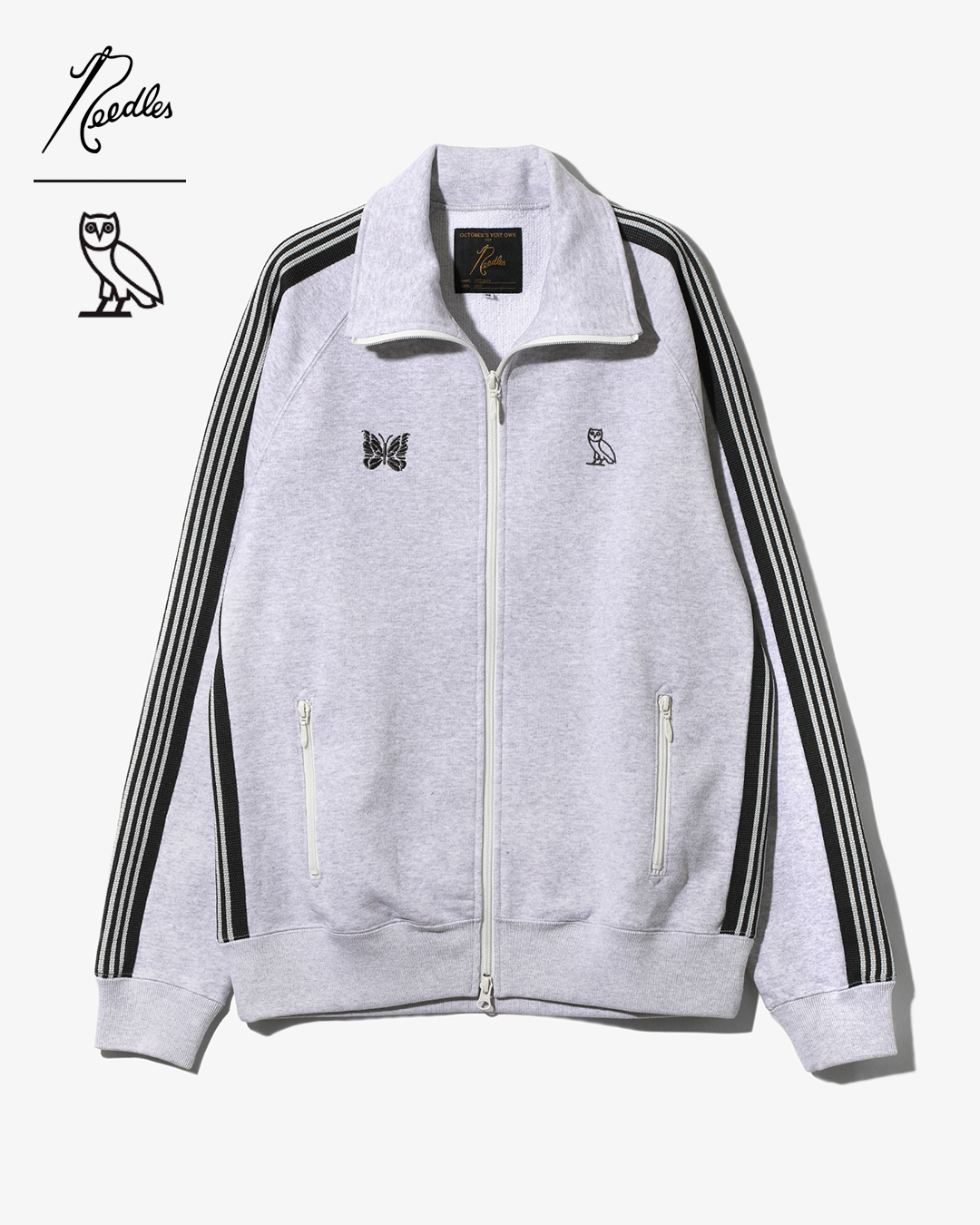 第二弾となる本コラボでは、「OCTOBER’S VERY OWN」のアイコンであるフクロウと「NEEDLES」のパピヨンが象徴的に配置された「TRACK JACKET」「TRACK PANT」を中心に展開。