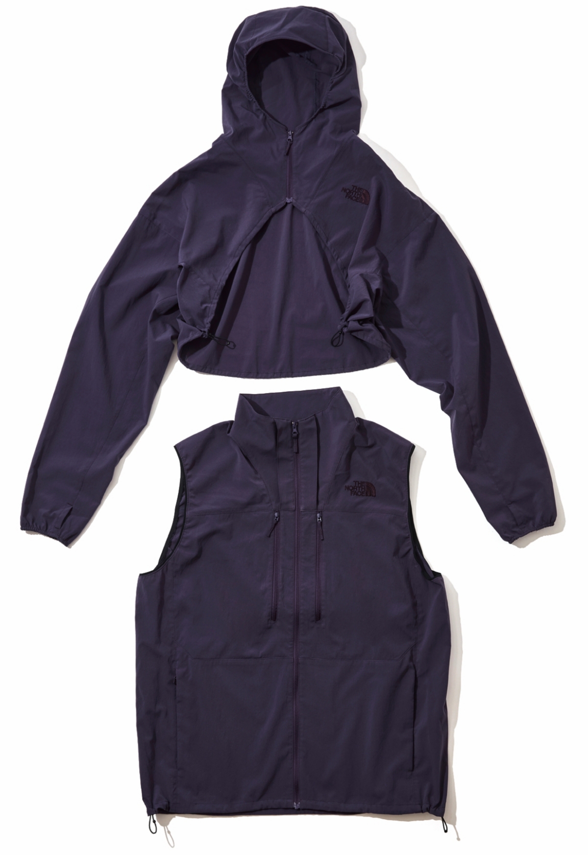 ファスナーで切り離すことでジャケット、ベスト、ボレロとして着用可能な3WAY仕様。UVケア機能を備えており、日除け用アウターとしても重宝する。