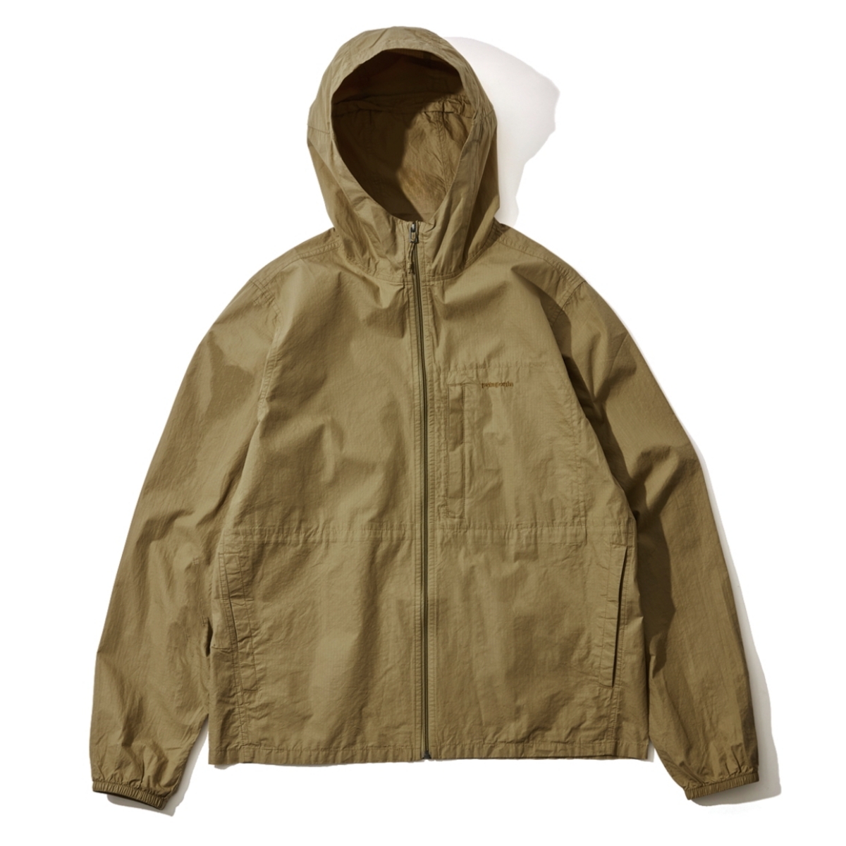 パタゴニアを象徴するウインドブレーカー「フーディニ・ジャケット」を天然素材でメイク。軽量でコンパクトに収納でき、持ち運びやすい。