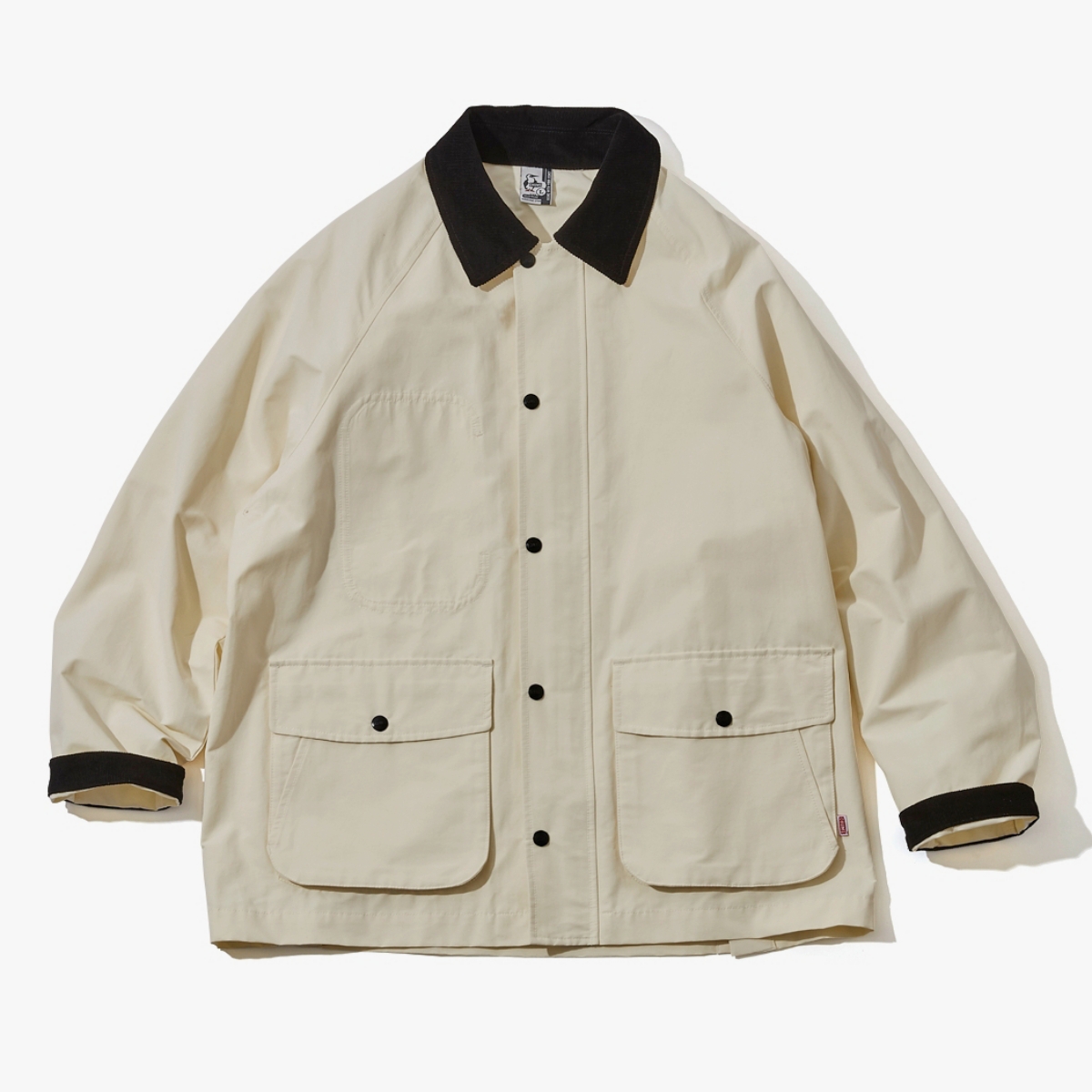 軽妙なコットンナイロンの1枚仕立てで、襟と袖のコーデュロイがクラシックなアクセントに。内ポケットにはステッチでCの文字が描かれる。