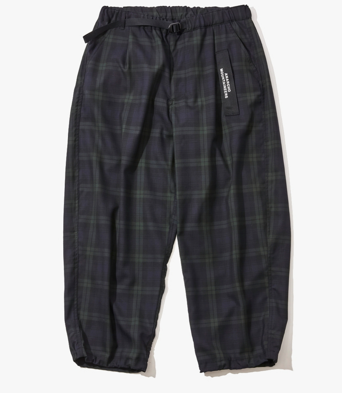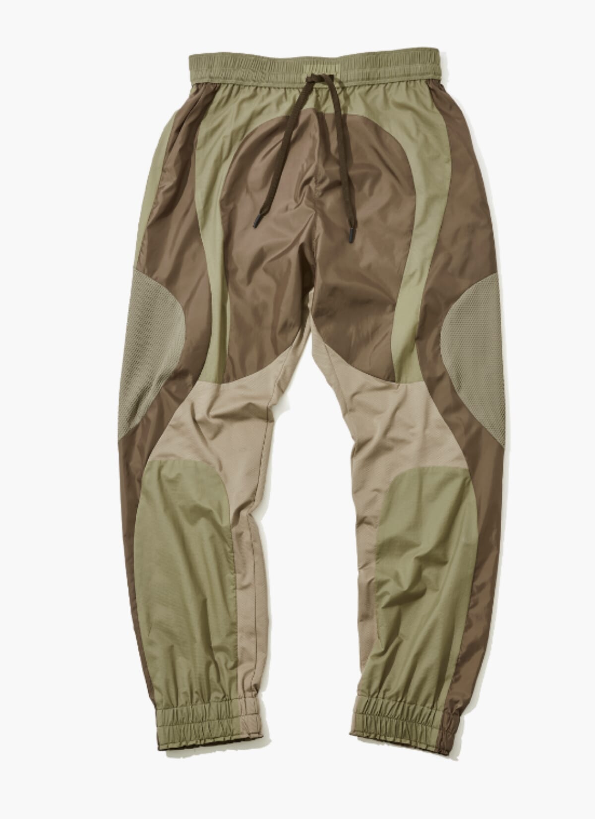 高密度タフタを使った軽量ジョガー。流れるような曲線デザインと切り替えが魅力で、存在感のある1本。撥水性と可動域があり、アクティブなシーンにも最適。