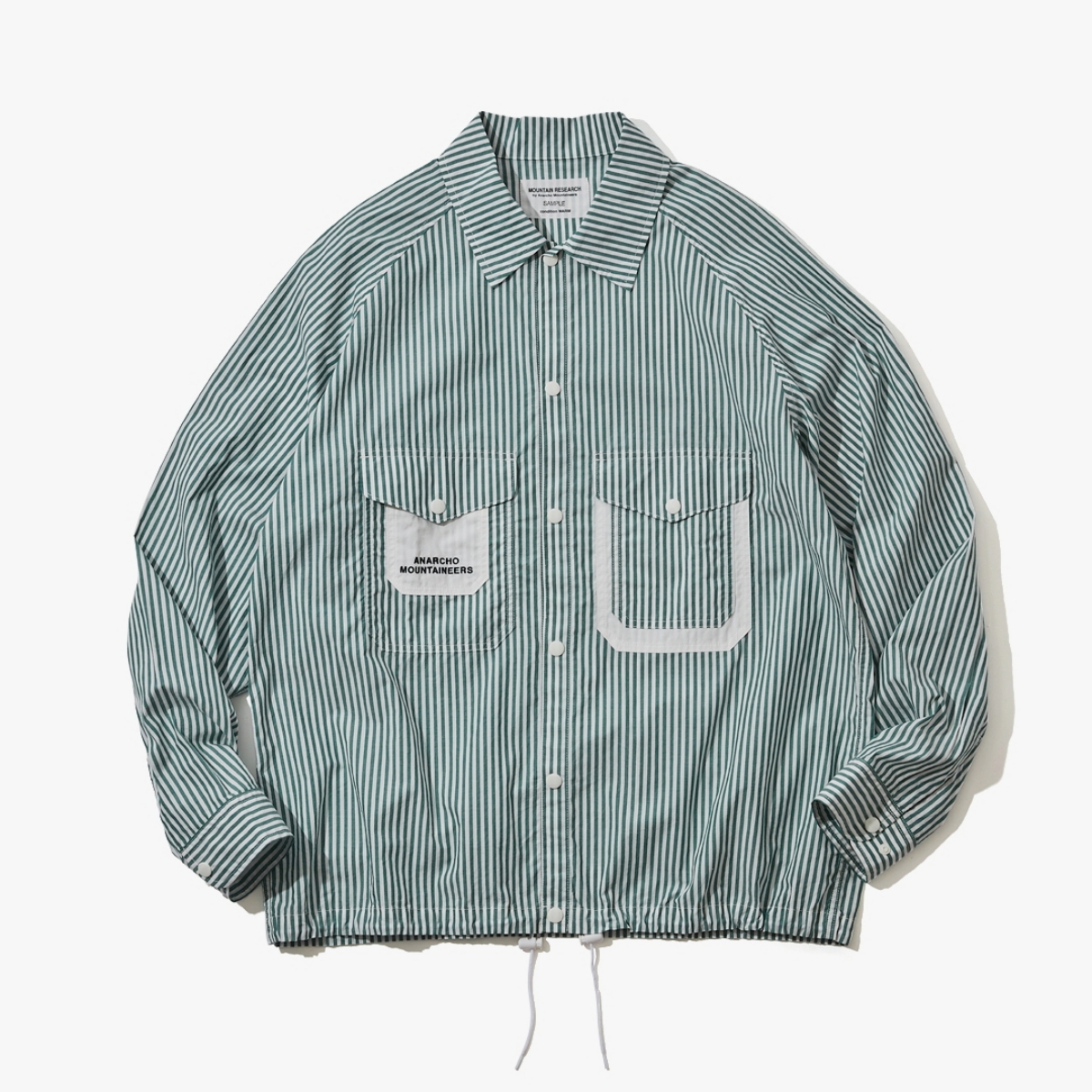 コーチジャケットを再構築し、清涼感と軽快な着心地を両立。ストライプの合間に用いられる白の切り替えを活かしたマルチフラップポケットで奥行きを表現。