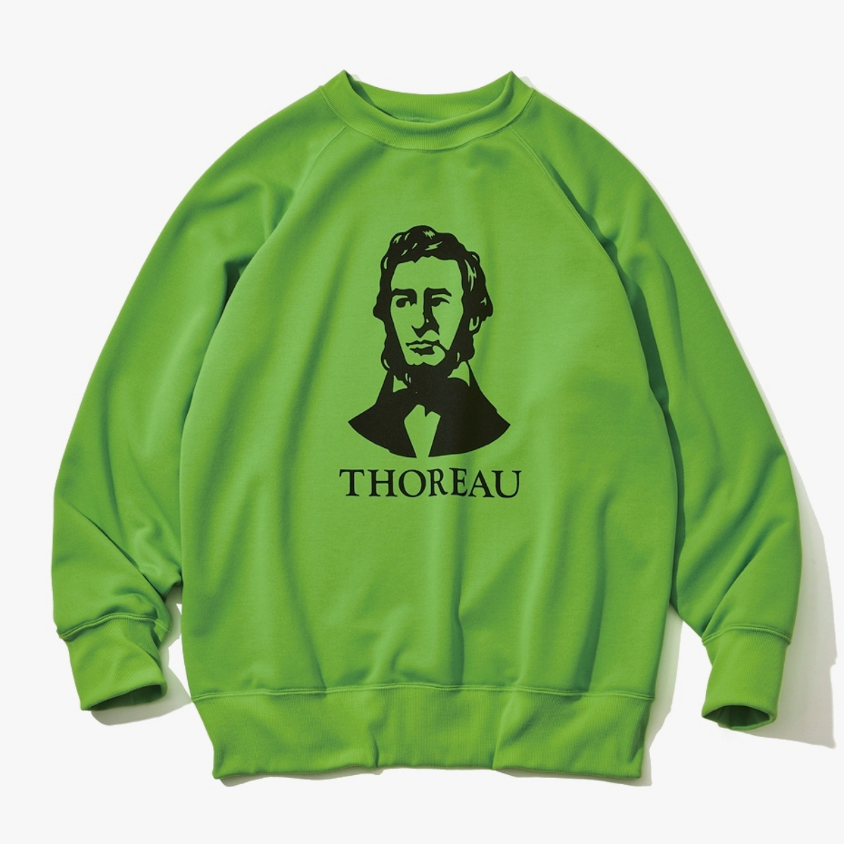 哲学者、ソローを描いたらしさ満点のスウェット。ボディは吸水速乾とUV機能を備え、思想性と実用性を融合。テーラードジャケットなどのインナーにも◎。