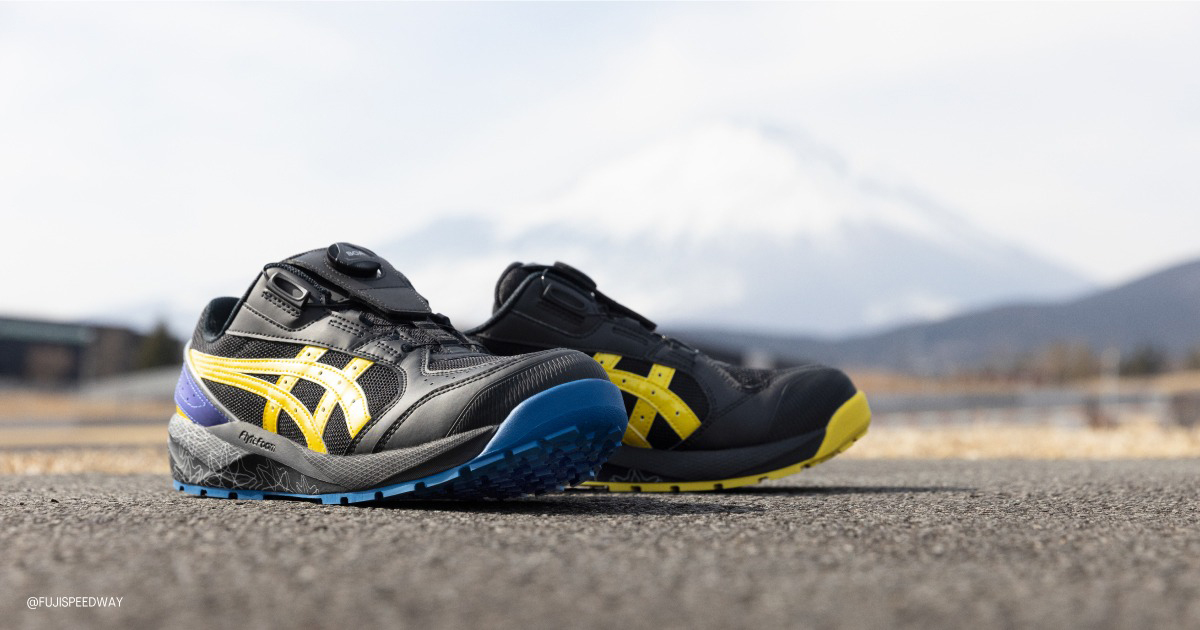 アシックスジャパンが2021年からパートナーシップを結んでいる「ROOKIE Racing(ルーキーレーシング」のチームカラーをまとったワーキングシューズで、今回で3作目となる。