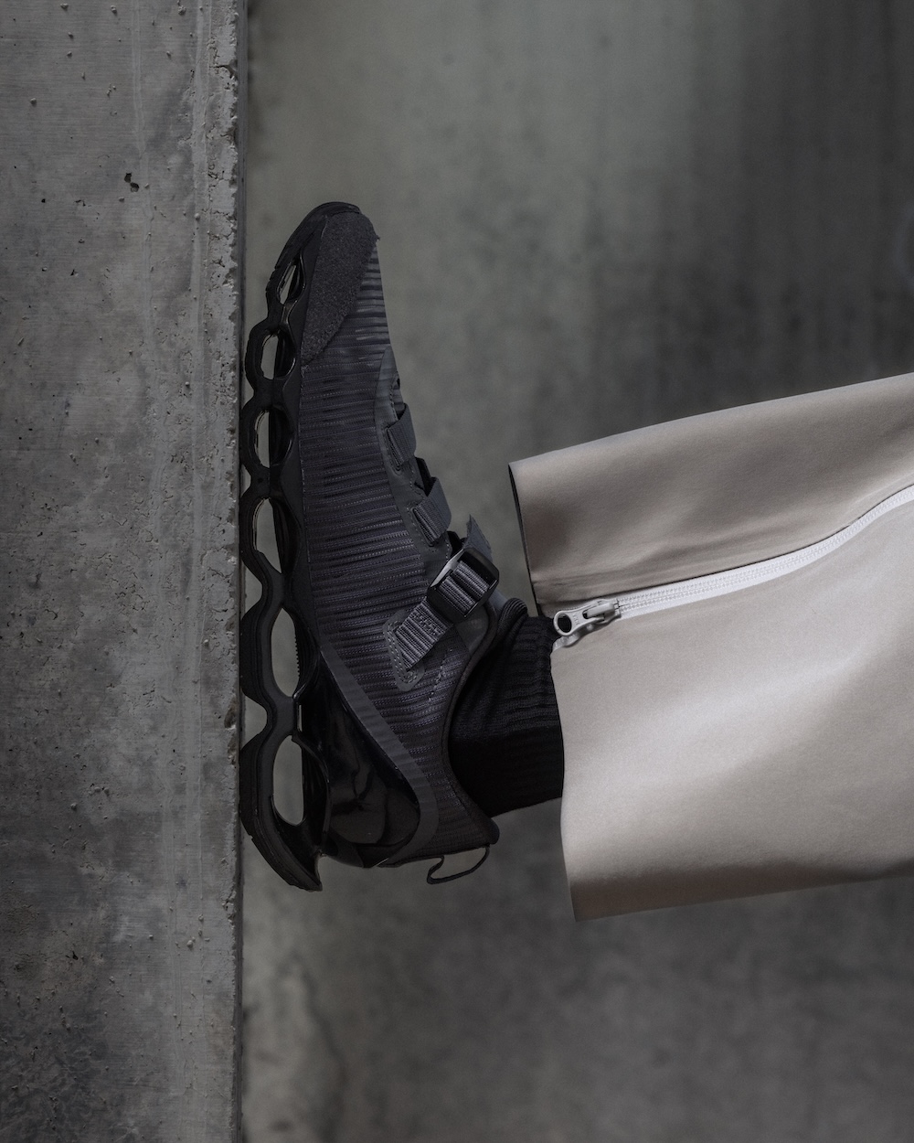 スプリントスパイクから着想を得たという“締めるべきポイントだけを確実に締め上げる”ストラップのワンアクション構造と、微調整用アジャストテープを備えた設計で、都市生活に適応する着脱のしやすさと履き心地を両立した今作。近未来的なデザインが好印象です。