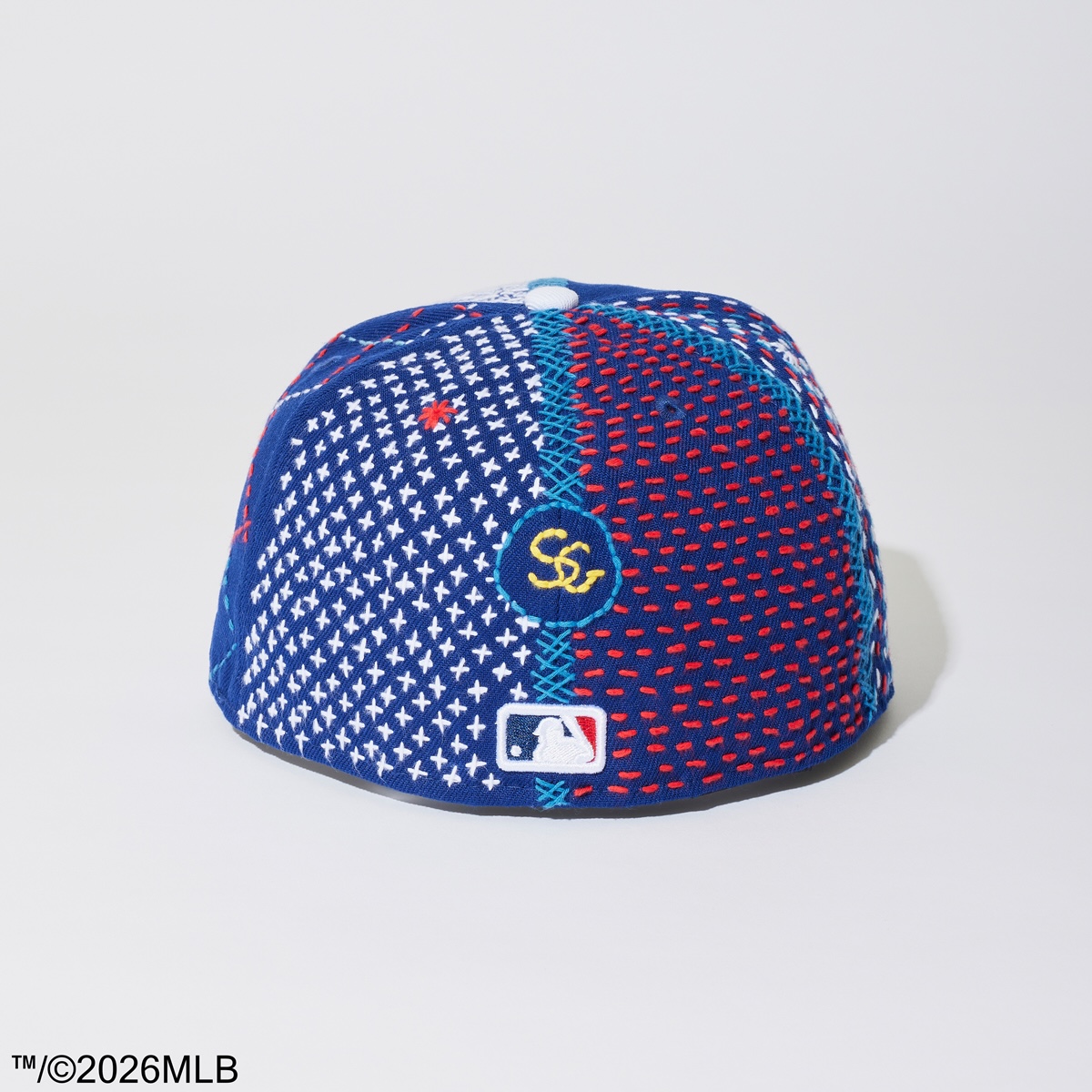 型崩れしにくいクラシックなフォルムに仕上げた、ニューエラを代表するボディの“59FIFTY®️”。サイズ調整のないフィテッド仕様を活かし、サイドとバックを含めて全体に大胆な刺し子が落とし込まれています。