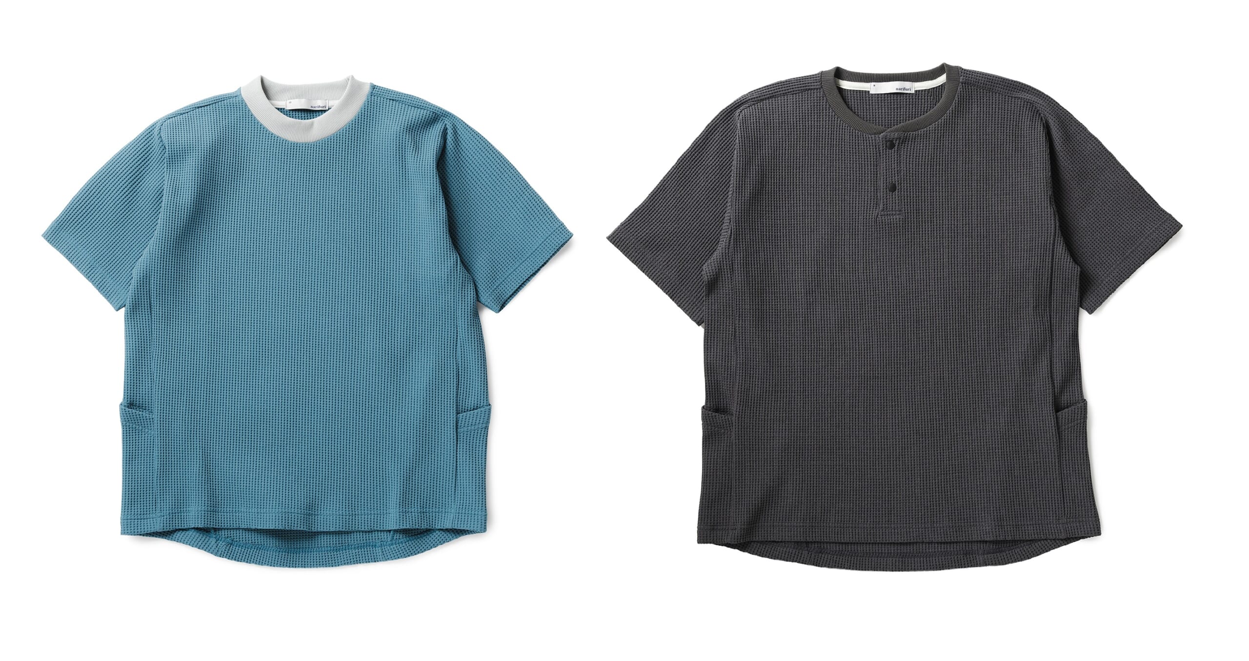 マルチワッフルクルーネックTシャツ 、マルチワッフルヘンリーネックTシャツ