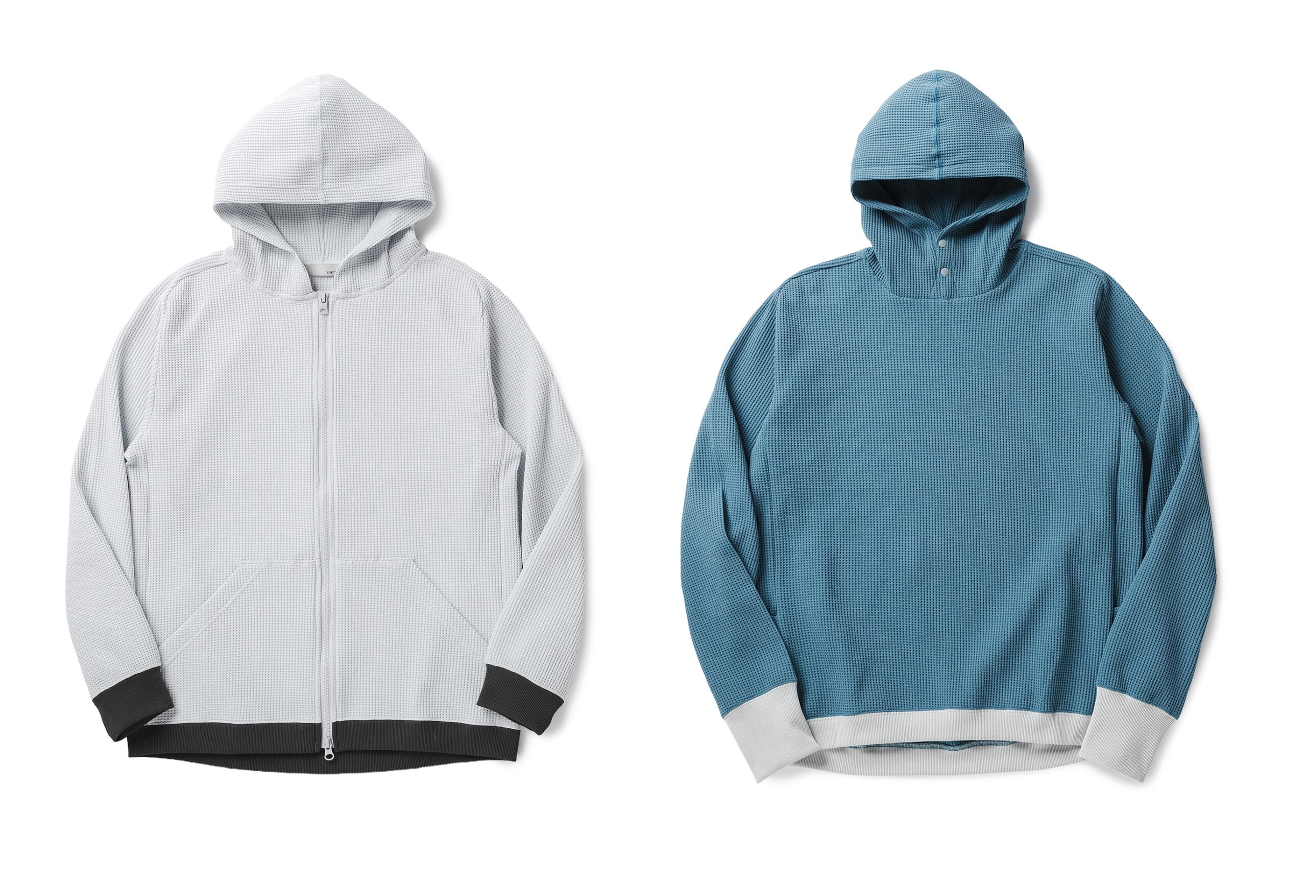 マルチワッフルジップパーカー、マルチワッフルプルオーバーパーカー