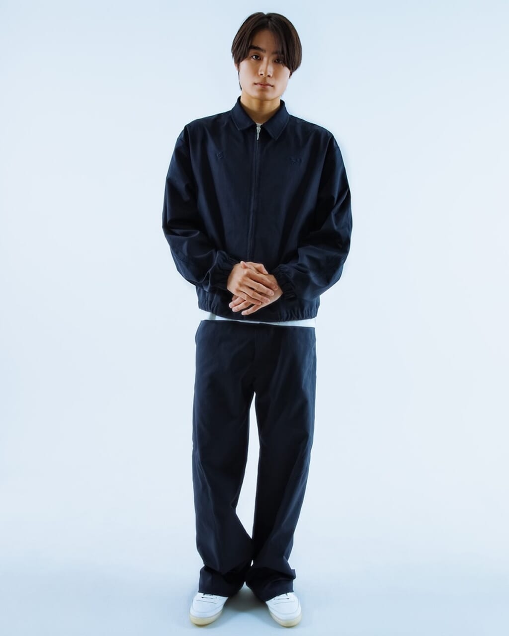TWILL ZIP JACKET ¥17600、WIDE CHINO PANT ¥16400