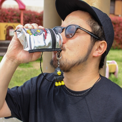 表裏に高強度の保冷生地をあしらうことで、普段の手荷物だけでなく缶&瓶のドリンクも快適に持ち運びが可能。お茶目な表情のオリジナルキャラをプリントしたポップな佇まい。