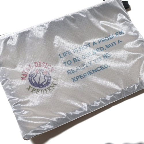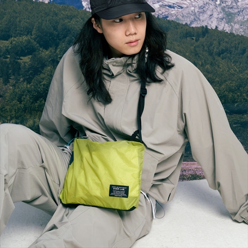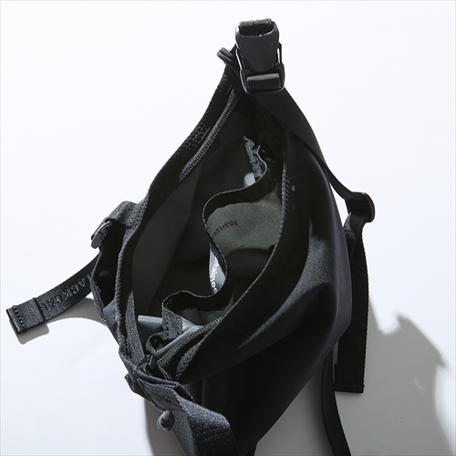 55gという持つと軽さに驚かされるサコッシュは、パラグライダーのキャノピーを使って再構築。引き裂き強度に優れるうえ、ボトムは耐荷重を追求するためにタフな素材で補強。