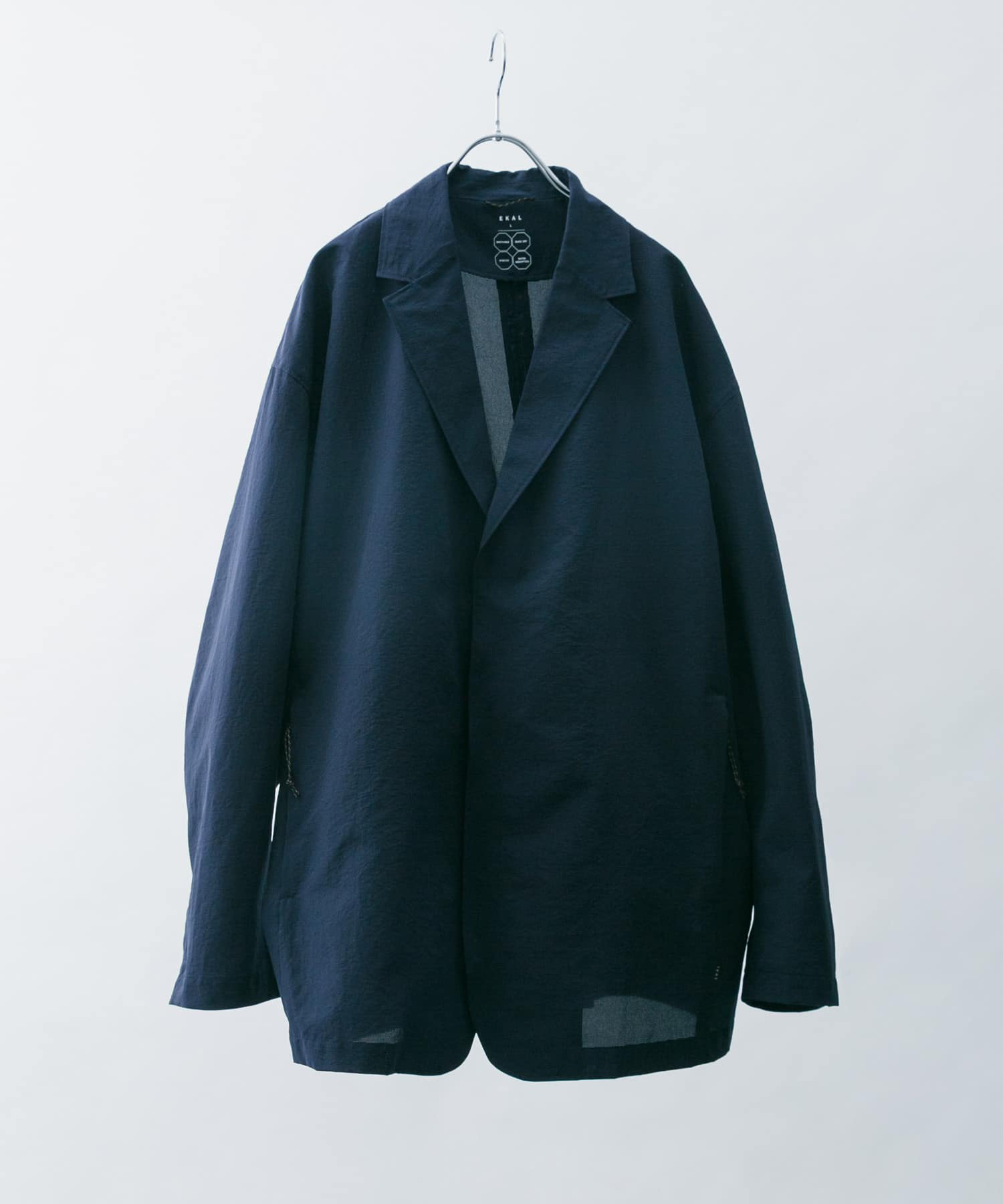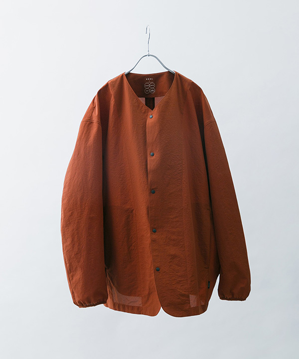 カーディガンタイプのこちらは、裏地を省いた一重仕立てで、通気性と軽快さを最大限に引き出した構造に。フロントはスナップボタン開き仕様。腰ポケットはファスナー付きで、見た目を損なわず実用性を確保。袋布にはメッシュ素材を使用し、軽快で蒸れにくい仕様です。