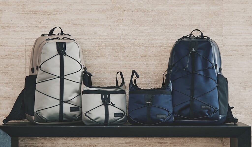 サコッシュ、バックパック、ボストンバッグの3型で、ボストンバックは BLK White Mountaineeringのみ。サコッシュとバックパックにはグローブやライトアウターが一時的にホールドできるバンジーコードを配し、実用的かつシンボリックなアクセントに。