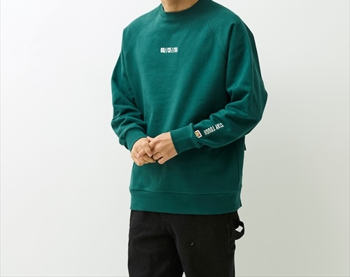 フロントと袖口にワンポイント刺繍を施したスウェットは、ラフに着こなせるドロップショルダーのラグランスリーブに。ポリエステル混のコットンボディは軽くて滑らか。