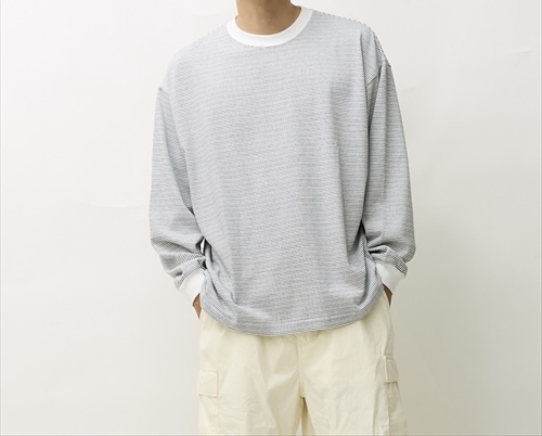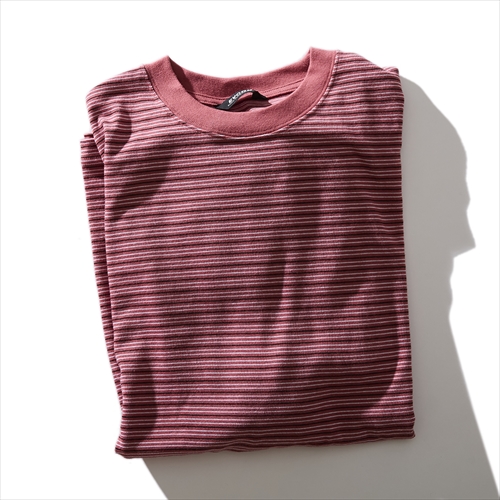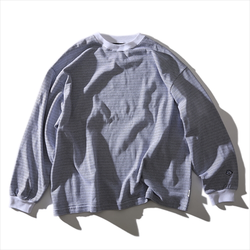 細ピッチのボーダーパターンを落とし込んだ、世田谷の人気ショップ・フリッジの10周年を記念してデザインされた限定モデル。ゆったりと着られるワイドシルエット。
