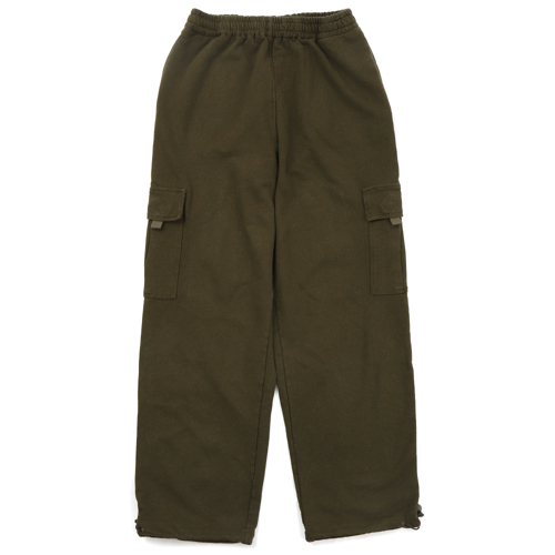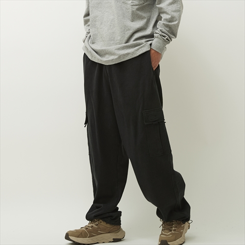 裾にドローコードを施したラフなカーゴパンツは、ヘンプとオーガニックコットンを混紡したオリジナル生地を使用。独特の素材使いでミリタリー調の無骨な一本がカジュアルに。