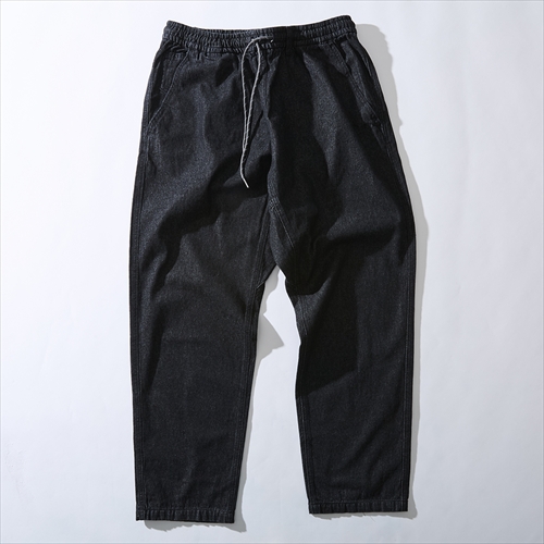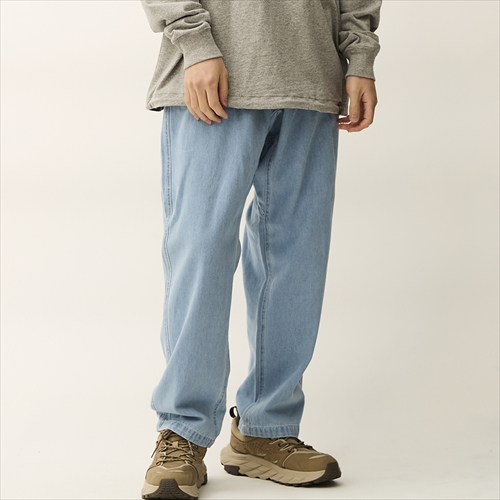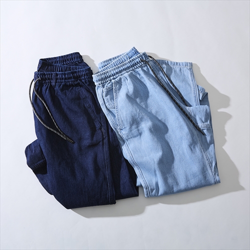軽やかに穿きこなせるやや薄手の8オンスデニムを用いた一本。ゴムをあしらったイージー仕様のウエストを備え、裾に向かって細くなるナチュラルなテーパードフィット。