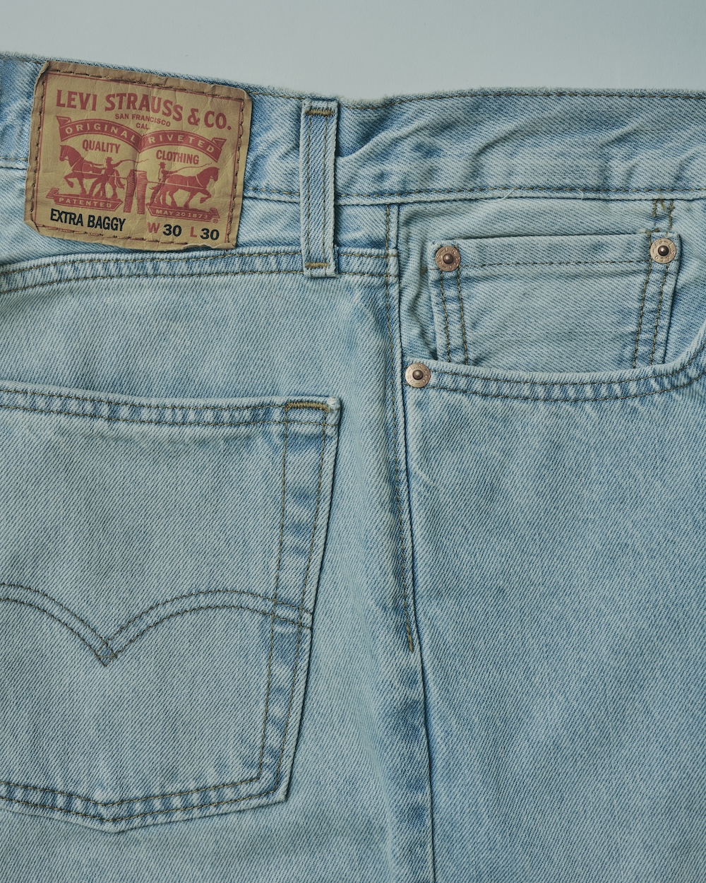 リーバイスとJS レリュームのコラボ最新作! ルーズなシルエットにライトウォッシュデニムが映える。