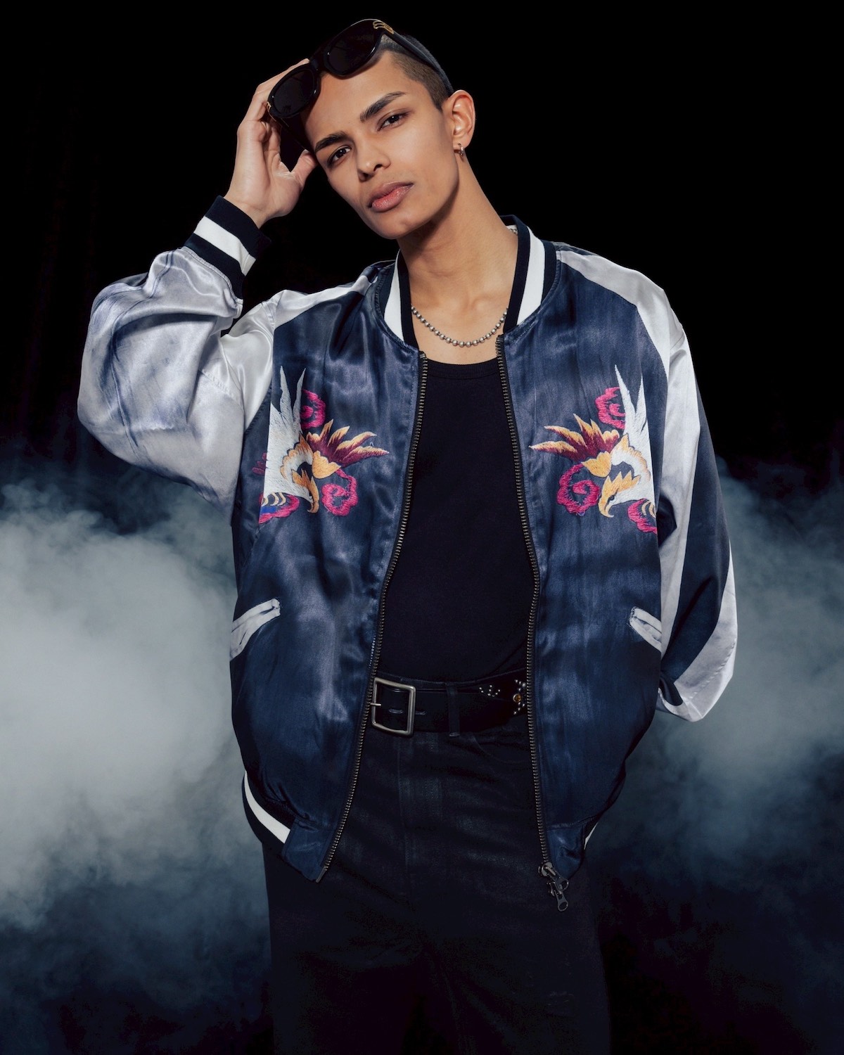 手作業による刺繍が魅力的な‘50年代のスーベニアジャケットを転写で表現。刺繍糸1本1本を画像処理し、リアルかつ鮮明な描写を実現した。素材はヴィンテージのサテンスカジャンよりライトな生地を採用。幅広いシーズンで活用できるよう図った。