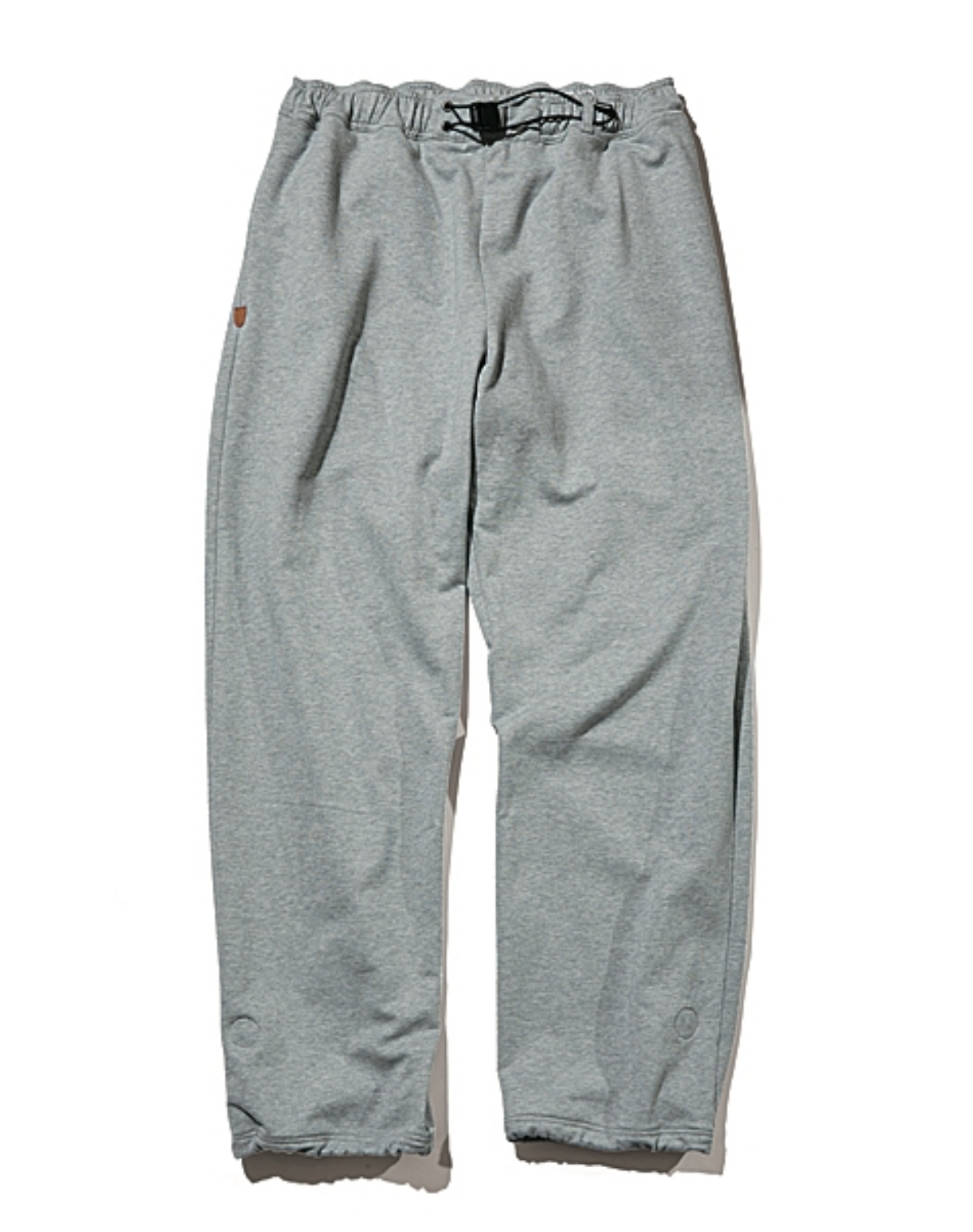 スウェット感覚でイージーに穿けるパンツながら、独自のハリがある質感でラフになり過ぎない着こなしが楽しめる。「ベルトの代わりに、フェドロックのバックルを備えています」。
