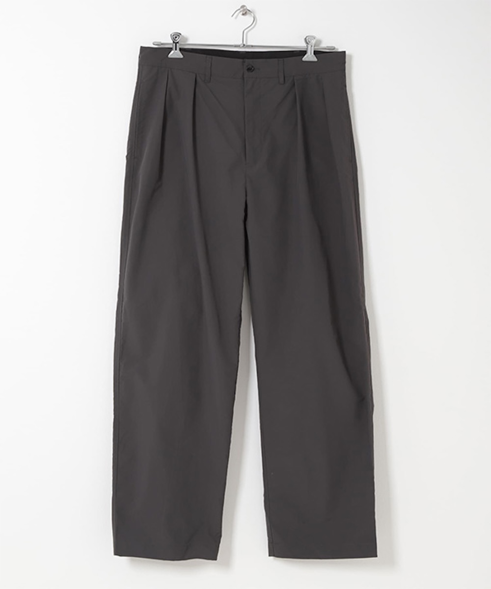 ジャケットと共地のパンツは、タック入りで程よい太さのシルエットを採用。ウエストはゴムを入れず、ドローコードで調整可能です。シャツやTシャツをインしたスタイリングも良さそう。単体でもセットアップでも着回しやすいベーシックデザインです。
