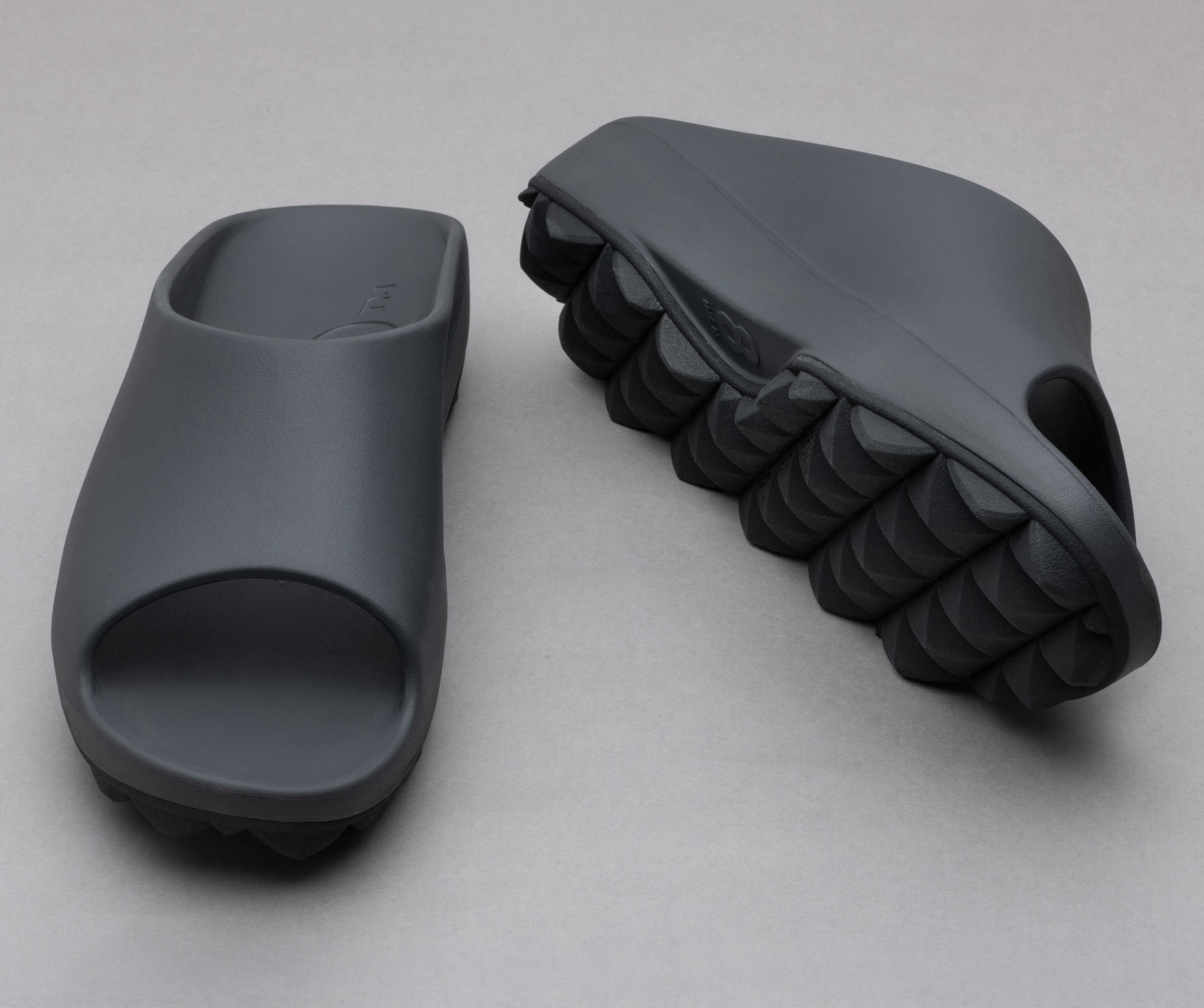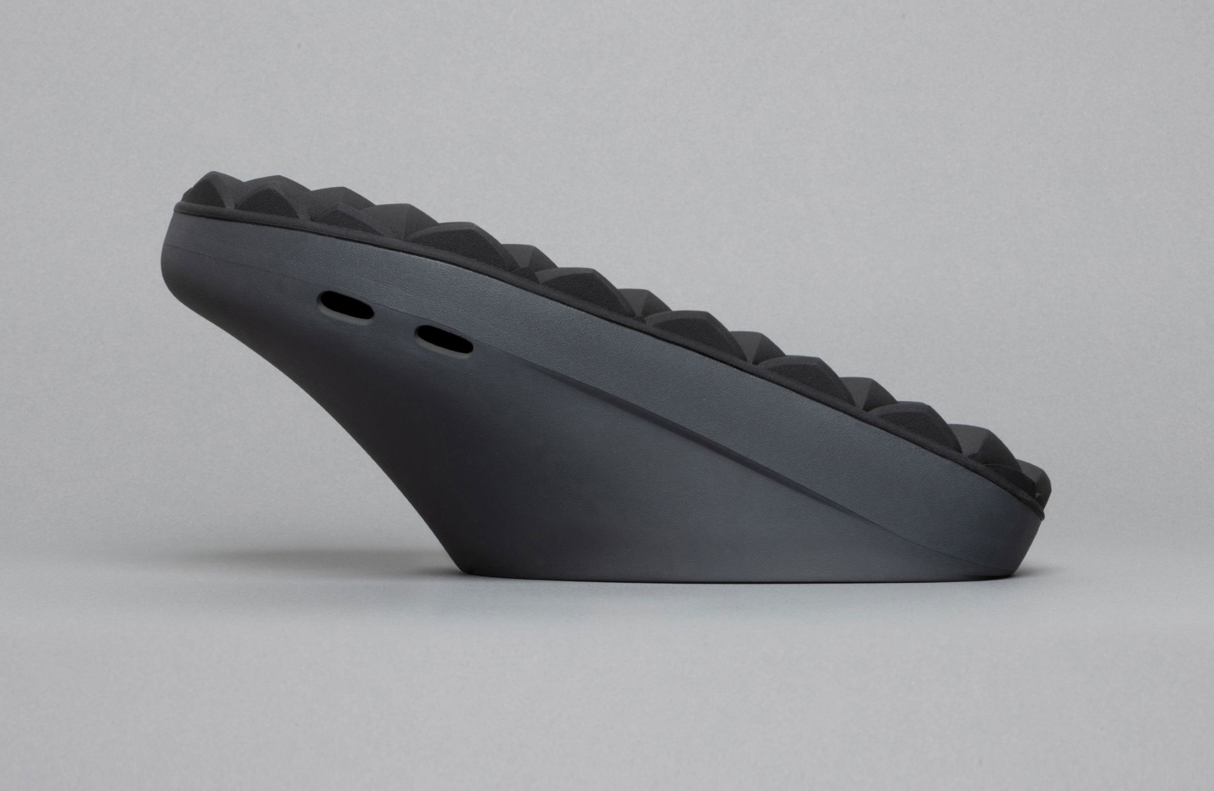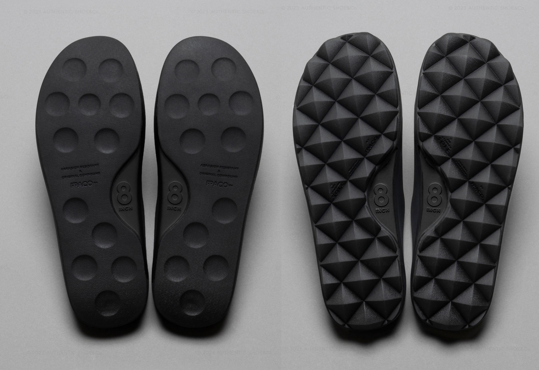 アウトソールについては2パターンを用意。フラットソールはグリップ力と排水性を両立したドット仕様、そしてピラミッド型に盛り上がった「AIR STUDDED SOLE」はスタッズ内部に空気圧を内包することで反発力とクッション性を生み出す。