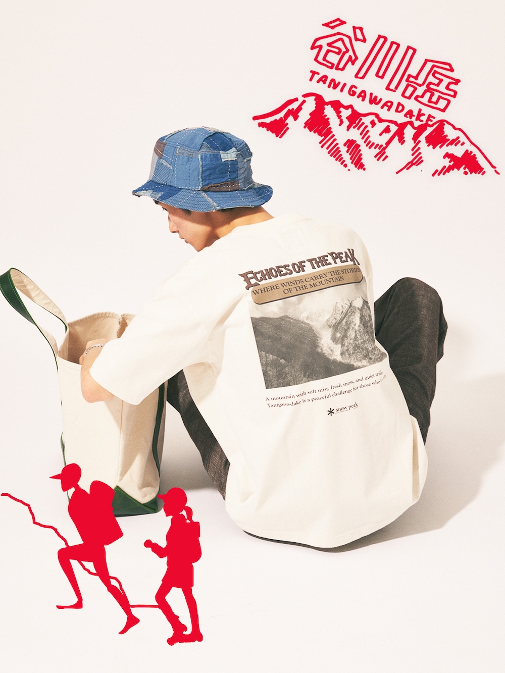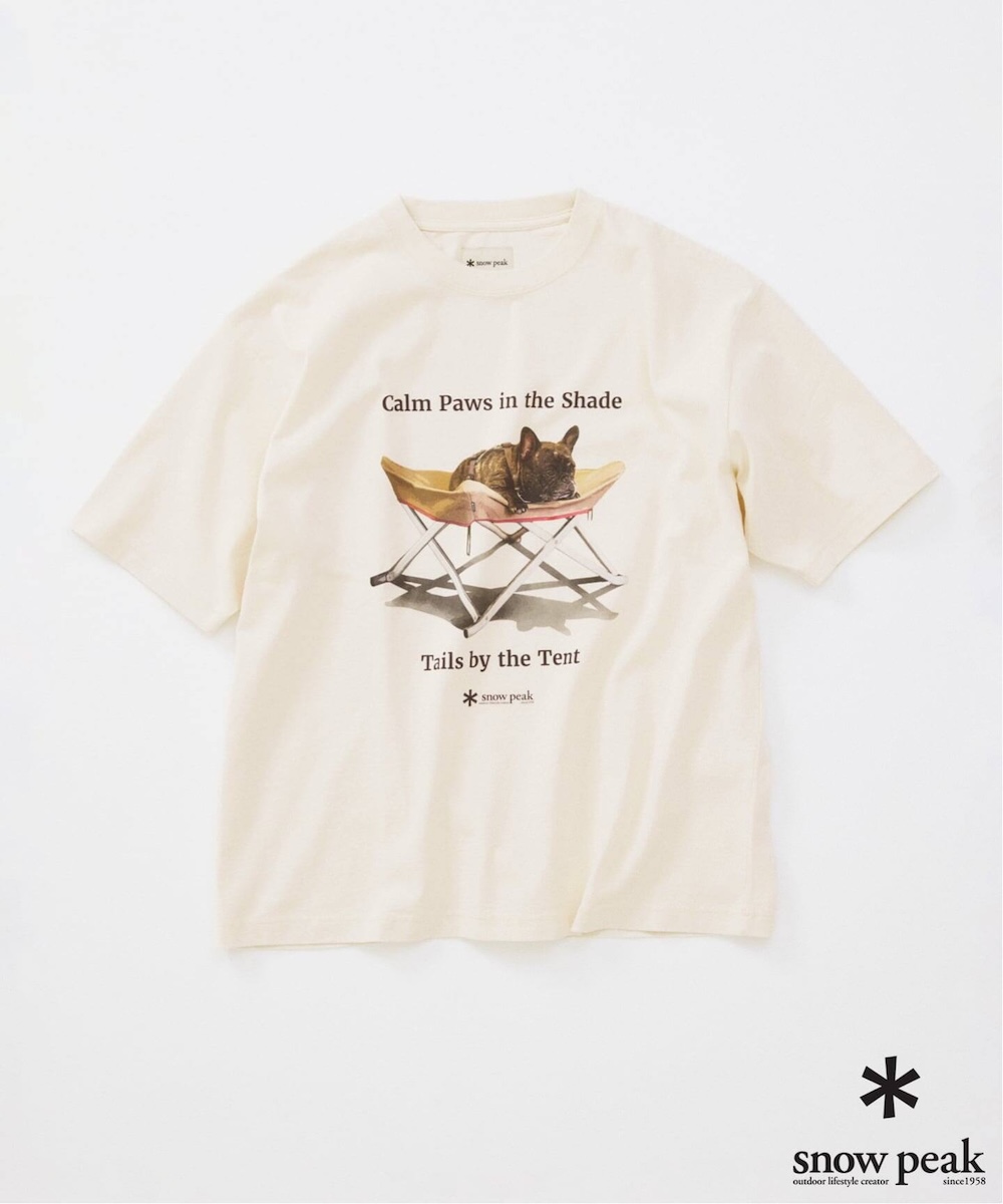 今回のコレクションでは、「スノーピーク」のフィールドやプロダクトから着想を得たグラフィックを採用。アウトドアの空気感の中に、休憩中のキュートな犬たちをイラストをはじめ、谷山岳、キャンプギアなどアートワークをプリント。「スノーピーク」ではあまり見かけないプリントTシャツっていうのもいいですよね。
