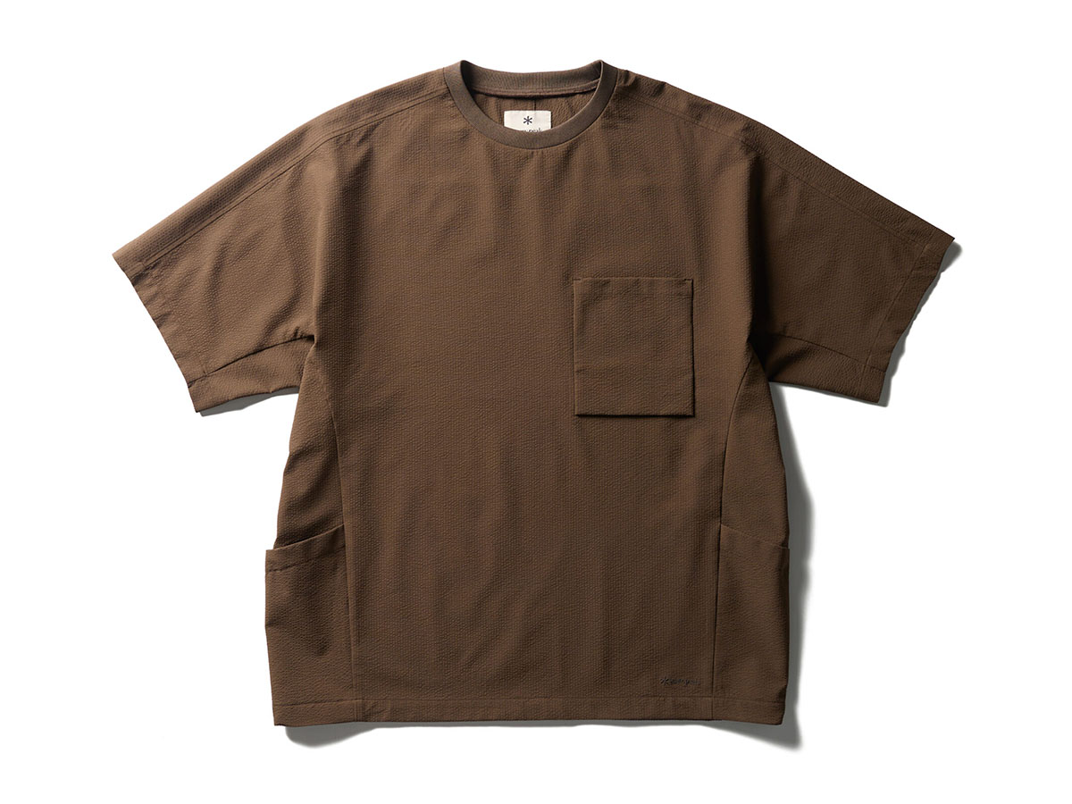 26年春夏から新たに登場したスノーピークの“Airo”シリーズは、通気性、速乾性、UV対策を備えたポリエステルを素材に採用。日焼け、汗による不快さを軽減するほか、日陰を多く作り、風を通す日本の簾をイメージした構造でメッシュ加工が施されているので、より涼しさを感じることができるのが特長。