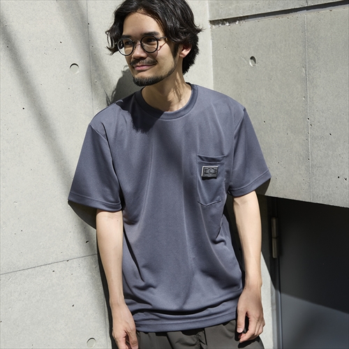 サングラスが入る独自形状のポケットを用いた、同ブランド定番のTシャツを別注でドライな生地にアレンジ。汗をかいても素早く吸い取り、ウエア内の湿気を効果的に排出。