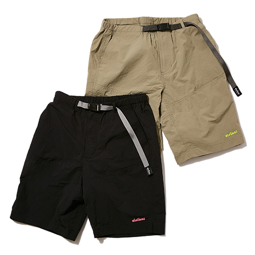 さり気なくも目を引く裾にステッチされたネオンカラーのロゴが別注のポイント。軽やかなナイロン生地を使用することで、穿くシーンを問わずに快適性を実現。