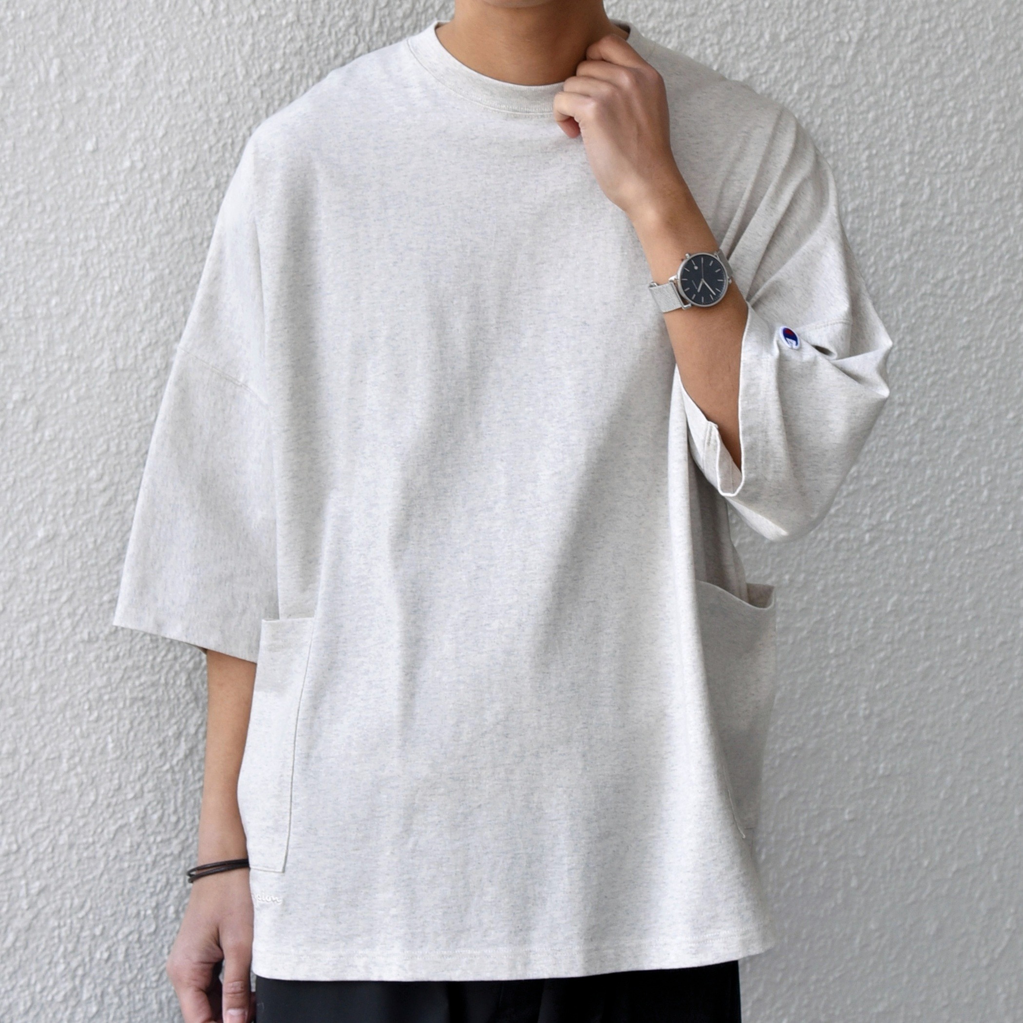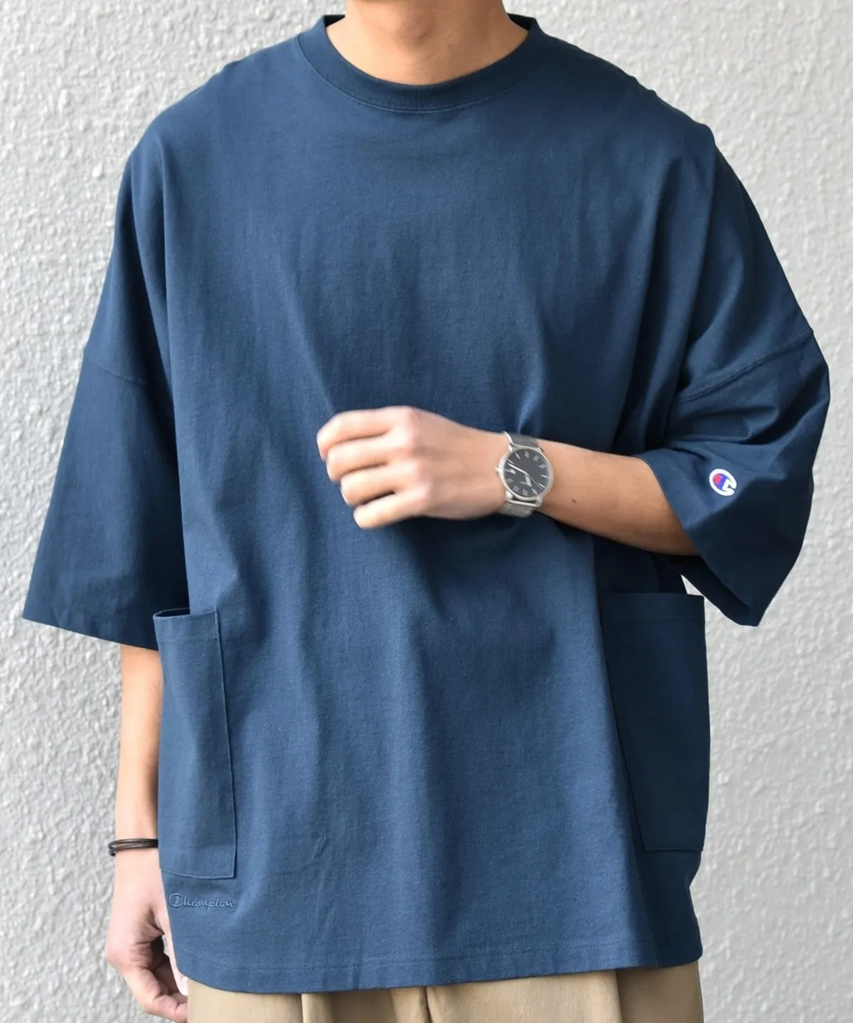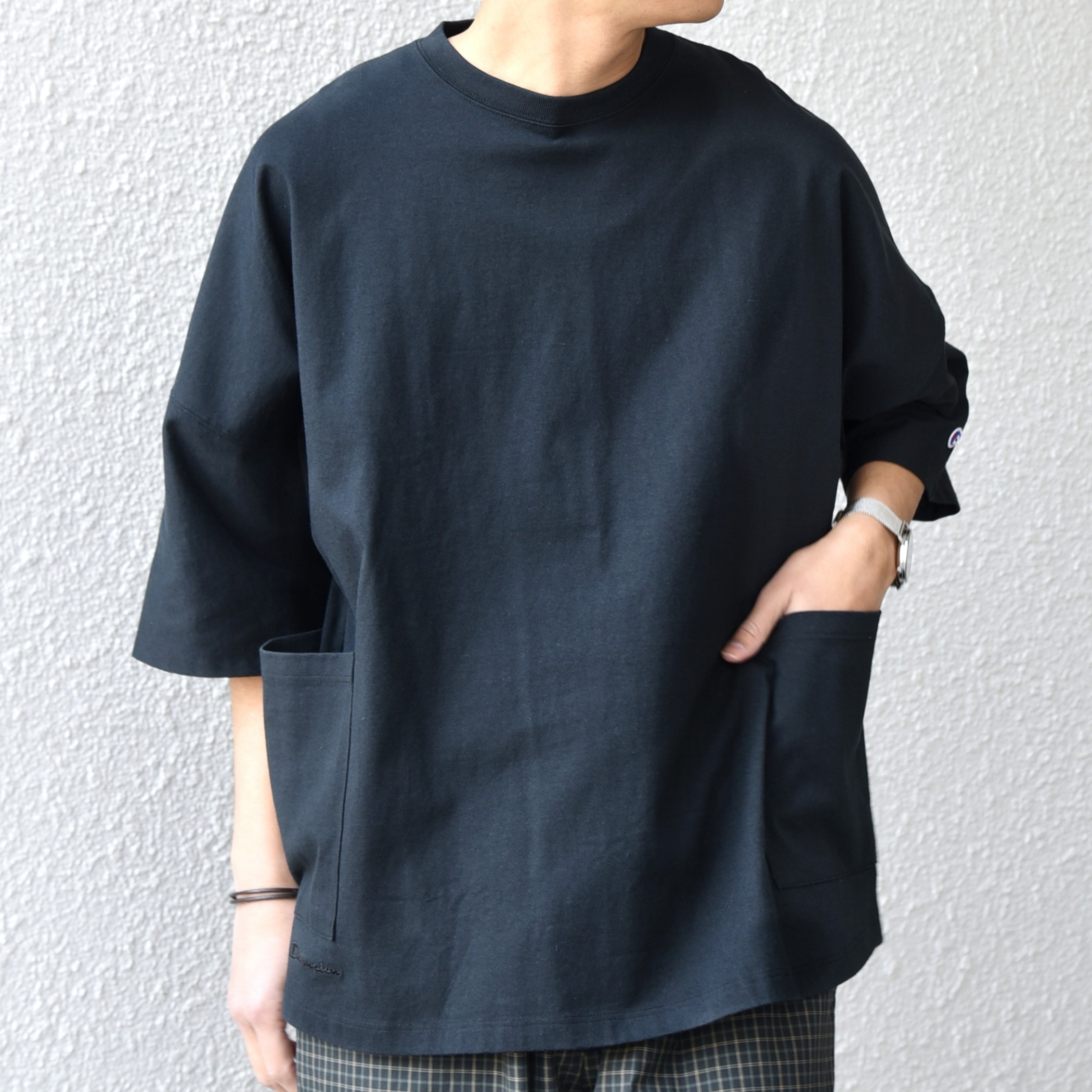 Champion ロゴ刺繍 ドルマン キャンプポケット Tシャツ ¥7480