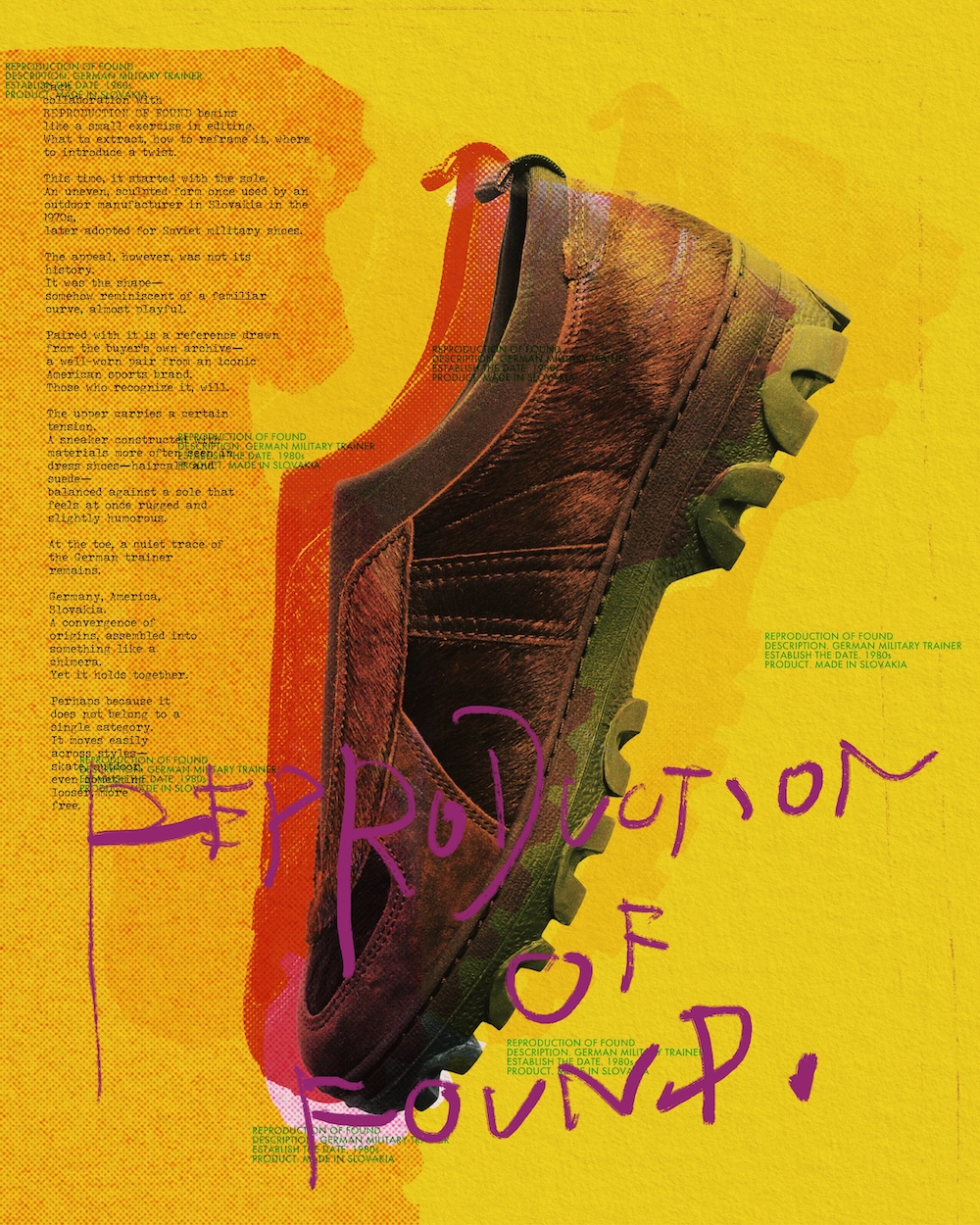 元となるネタを異なる視点で再編集し、新たな側面から捉えたシューズを提案する「L‘ECHOPPE(レショップ)」と「REPRODUCTION OF FOUND(リプロダクションオブファウンド)」の取り組み。2026春夏の新作も、様々な要素を抽出したハイブリッドなシューズが完成しました。