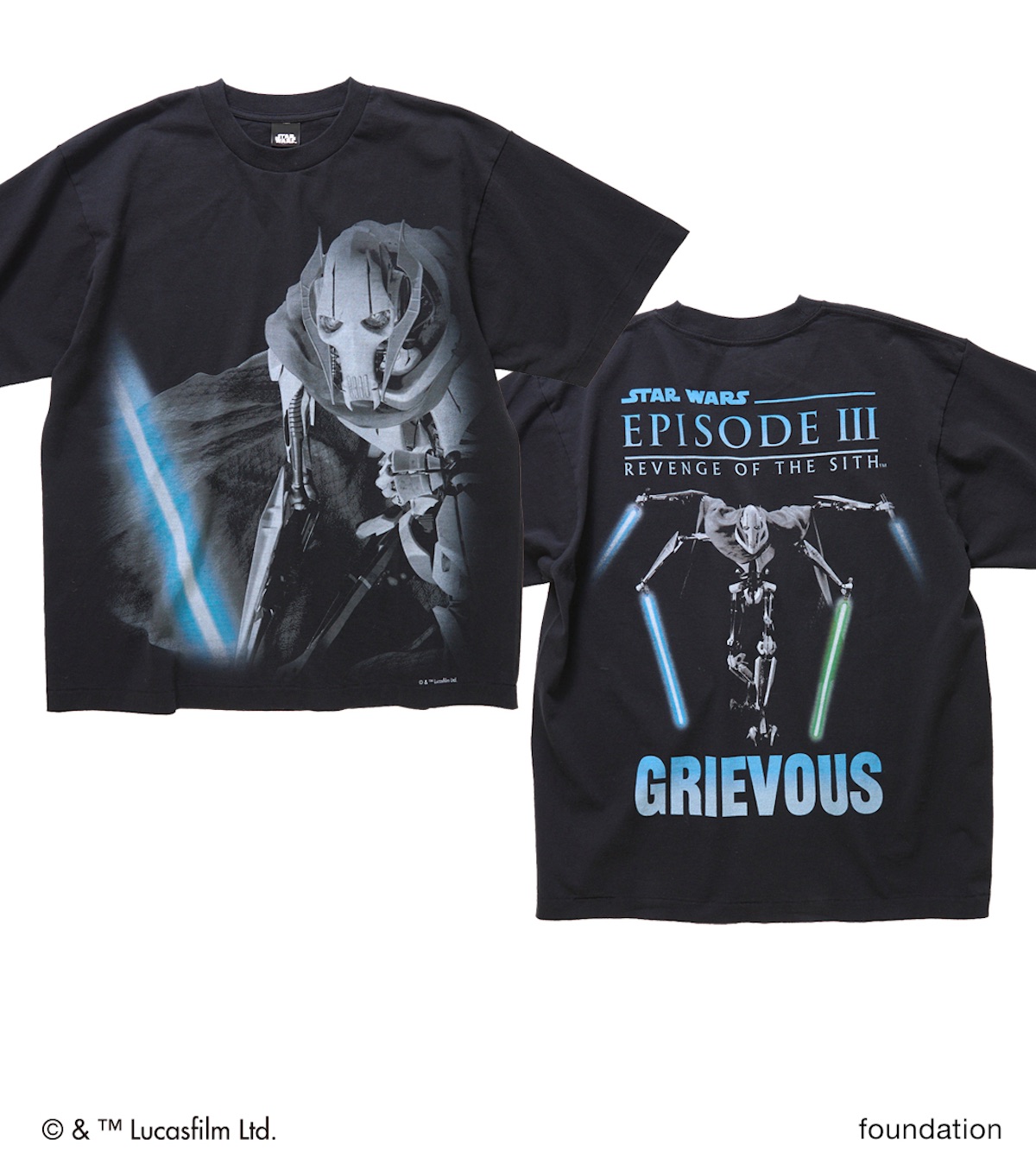 『スター・ウォーズ エピソード3/シスの復讐』より、オビ=ワン・ケノービに倒された名ヒールのグリーヴァス将軍を。背面プリントにはタイトルロゴと4本腕を展開した戦闘スタイルだけでなく、キャラクター名も取り入れた。