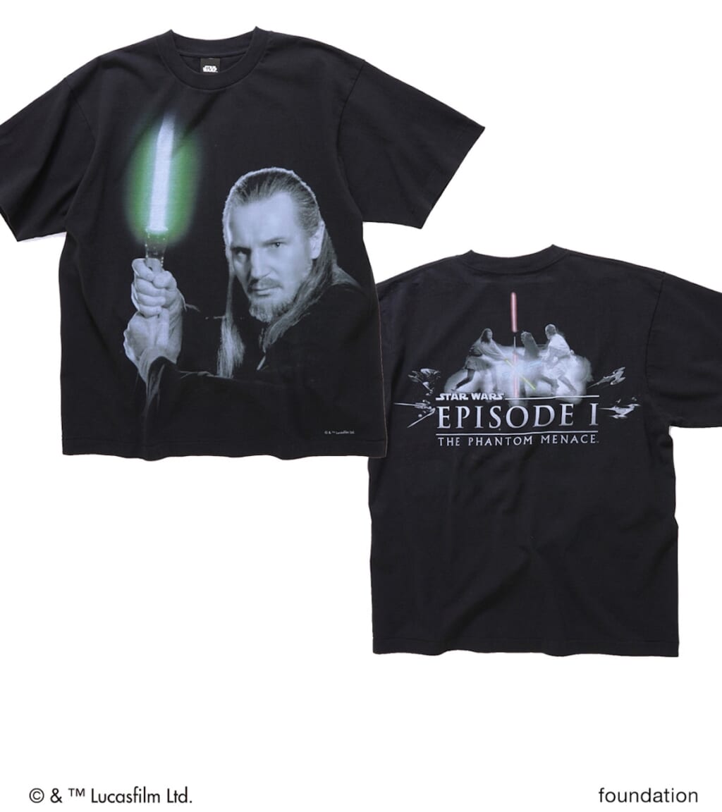 フロントにクワイ=ガン・ジンを落とし込み、バックには『スター・ウォーズ エピソード1/ファントム・メナス』のロゴを。惑星ナブーでダース・モールと戦ったシーンも描かれるのは、FREAK’S STORE 池袋パルコ店限定モデルのデザインとなる。