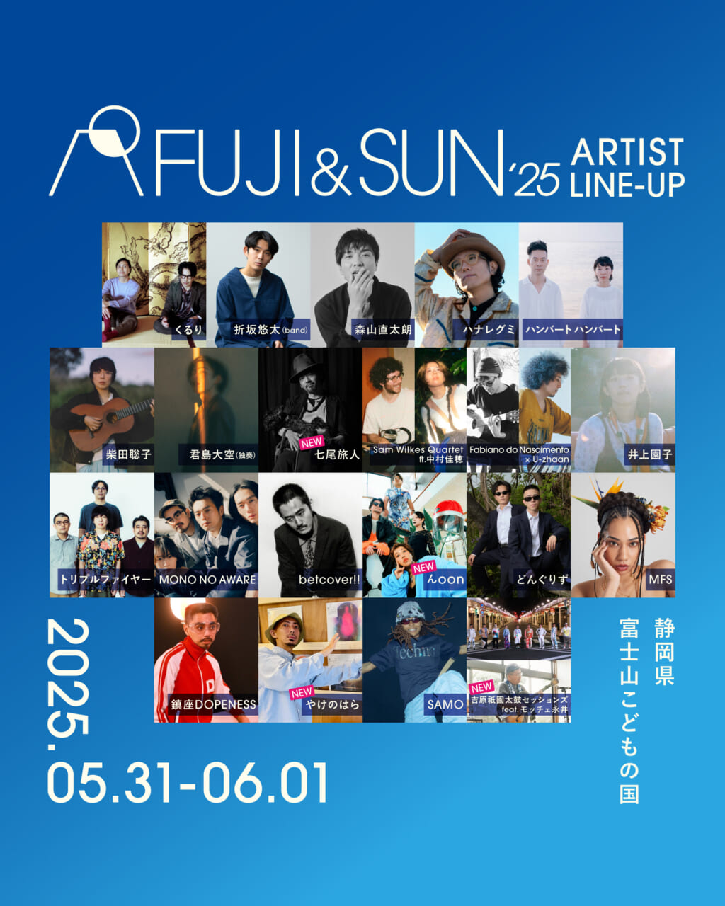 5月31日(土)~6月1日(日)の2日間、静岡・富士市「富士山こどもの国」で開催されるキャンプインフェス「FUJI & SUN ’25」が第4弾のアーティストを発表!子どもから大人までが楽しめるアクティビティや自慢のアウトドアコンテンツ、バラエティに富んだフェスフードの詳細も決定しました。