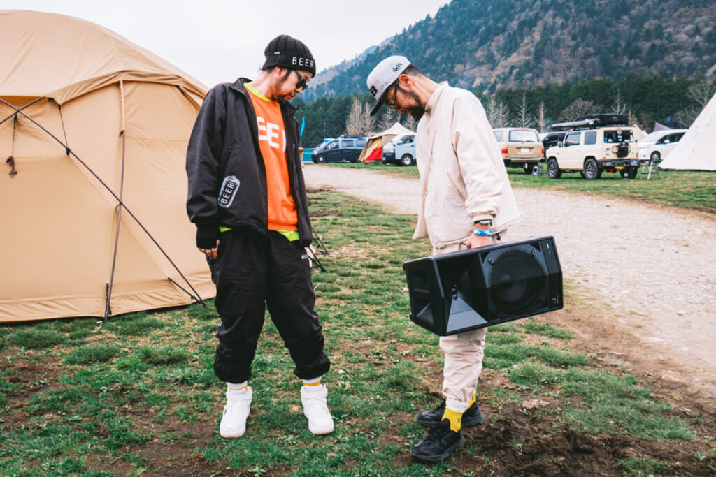 今回は、アウトドアフェスへの出演経験も豊富で「BEER」というアパレルブランドも手がけるラッパーユニット・上鈴木兄弟が、自身も出演したGO OUT JAMBOREE 2025にて体験(K-MIXステージの音響はこのスピーカーだけでまかなっていました!)。“現場目線”で感じた魅力や使い勝手を、ざっくばらんに語ってもらった。
