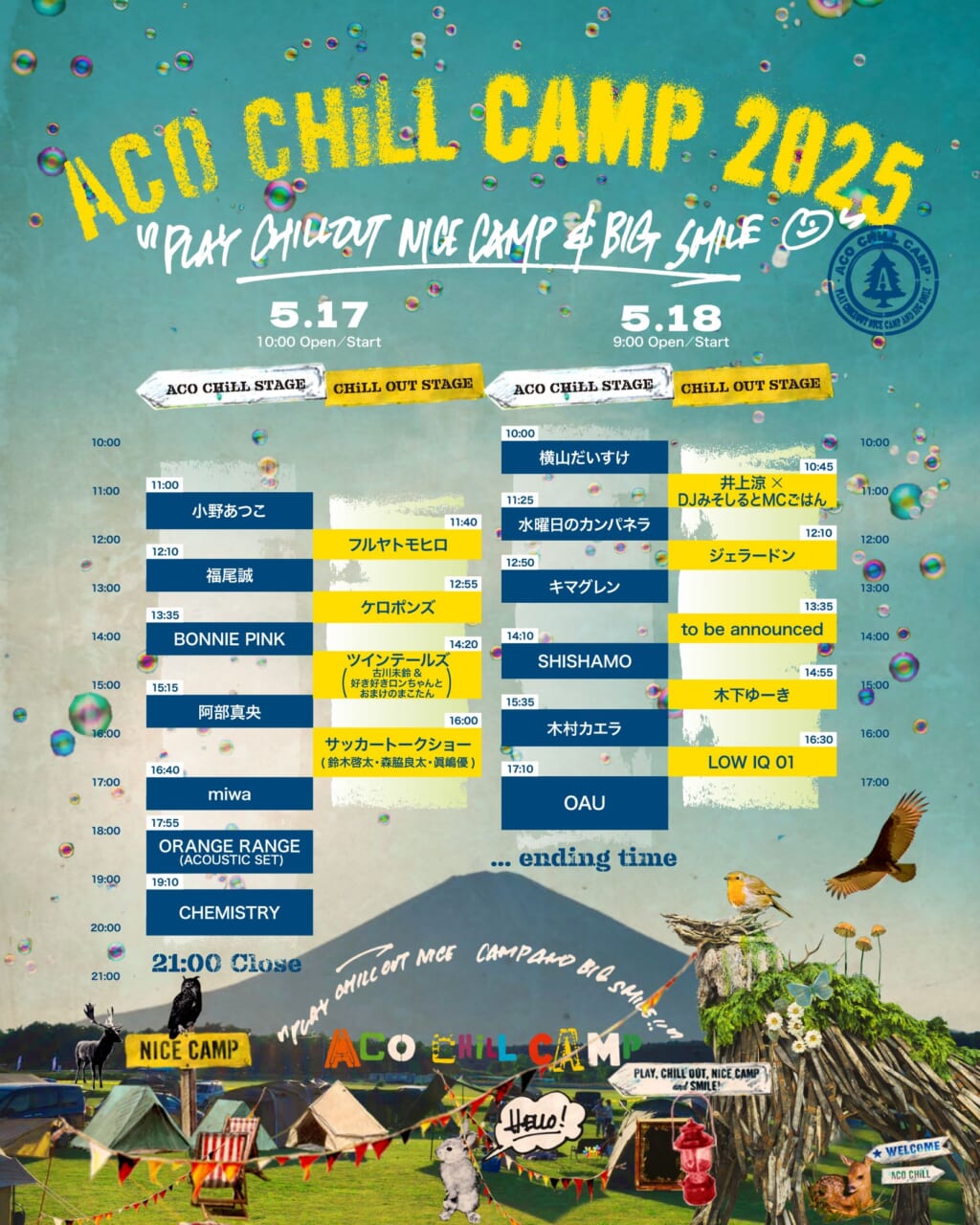 2025年5月17日(土)、18日(日)の2日間、静岡・御殿場の「富士山樹空の森」をメイン会場に「ACO CHiLL CAMP 2025 」が開催されます。