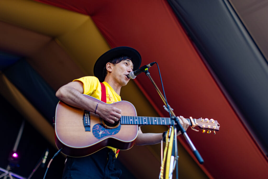 わたなべ たとえば緑の中で、あまり大きなステージではなくて中ぐらいというか、みんなの顔が見えるぐらいの距離で、小さい子が前のほうにいっぱいいて、後ろの大人も一緒に楽しそうにしていて、みたいな感じかな。だから本当に〈GO OUT〉の雰囲気はぴったりだなと思っていて、毎回出させてもらうことによって、他のアウトドアのフェスにも呼んでもらえるようになったので。逆に、いわゆるロックフェスには全然呼ばれないんですよね。