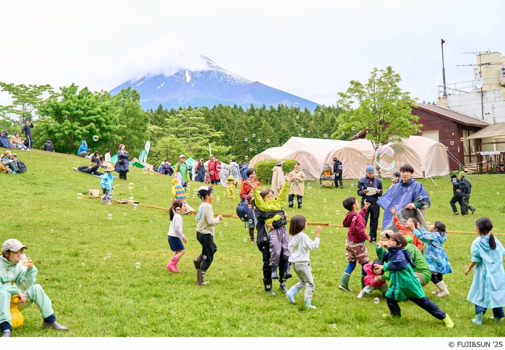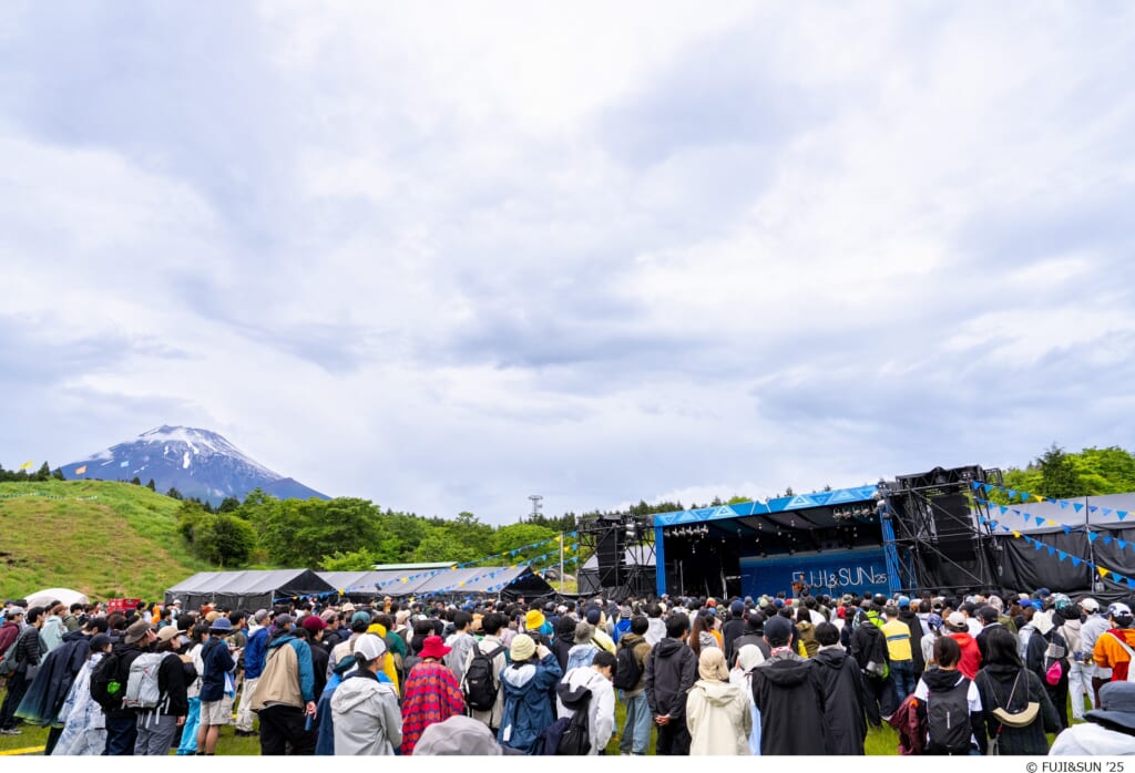 初日の朝には晴れ間ものぞき雄大な富士山がお目見えするも、その後は雨が降ったり止んだり、時おり富士山が顔を見せたりと、富士の麓ならではの天候だった「FUJI & SUN ’25」。過去最高となる7500人の参加者も、晴天じゃなかったからこそ印象に残るフェスの思い出がまた1つ増えたのではないでしょうか。