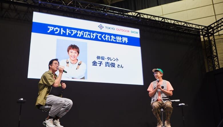 アウトドアにまつわるさまざまな著名人が登壇するなか、タレントや俳優として活躍する金子貴俊が登場。自身が外遊びにハマったキッカケなどについて語ってくれた。