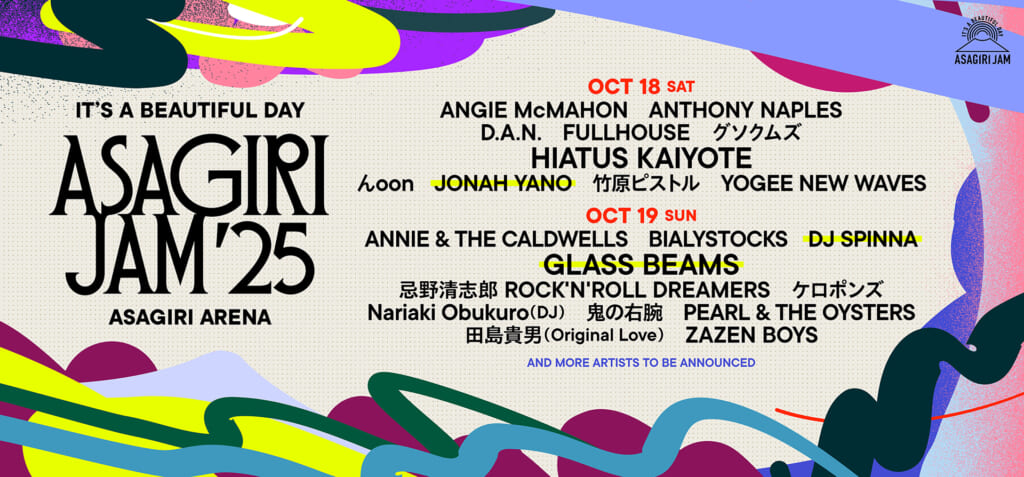10月18日(土)、19日(日)の2日間、静岡県富士宮市の朝霧アリーナ・ふもとっぱらにて「IT’S A BEAUTIFUL DAY ASAGIRI JAM ’25」が開催される。