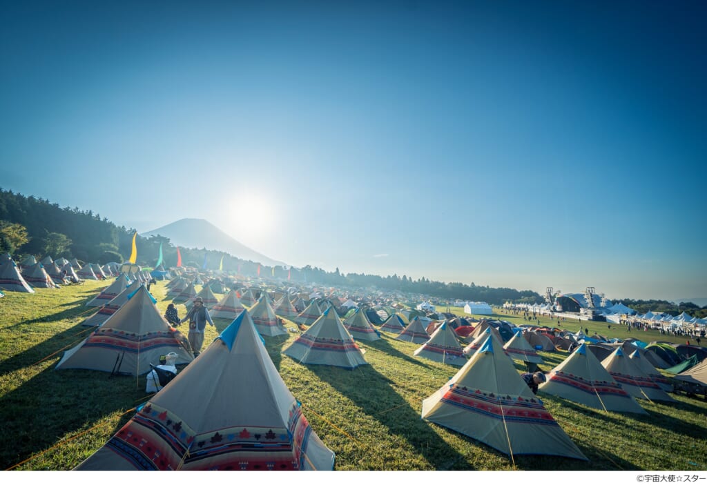 会場では、常設テントやアウトドアギアの宅配サービス、都市圏からの直行バスツアーも充実しているので、クルマやテントを持っていない人の参加も◎。