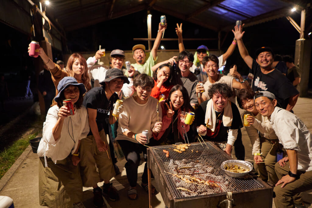 オラフ家さんオススメは、金曜夜の前夜祭に開催される持ち寄りBBQ。「キャンパーの交流場として初めましての方も打ち解けやすく、これがきっかけに仲良くなったキャンパーさんもたくさんいます! 色々な方に話しかけるチャンスです。炭などの準備や片付けはスタッフの方がやってくれ、自分たちは食材と食器を持ち込むだけなので、到着してから設営等で時間が無い方にもオススメです」。