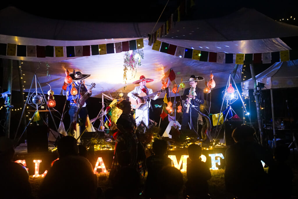 ブラジルのリズムを響かせる打楽器集団「ナタカトキオ」が会場を練り歩き、世界トップレベルのファイヤーパフォーマンス集団「火付盗賊」の圧巻パフォーマンス、本場メキシコの陽気な楽団「マリアッチ」は音楽ライブを開催。気の向くままに身体を揺らし非日常に酔いしれよう!